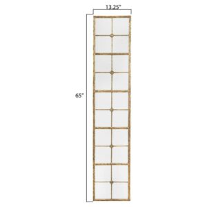 Add style and charm to your home with this Woven Paths Divided Rectangle Mirror with Distressed Gold Frame. This mirror features a vintage-inspired distressed frame and a stylish three-dimensional design with divided mirror sections that makes for a gorgeous, eye-catching statement in any room. It’s a perfect way to add depth and the illusion of extra space to a small area, including halls or entryways. The size makes it easy to use almost anywhere, which means you get full creative reign. Pair the Woven Paths Divided Rectangle Mirror with Distressed Gold Frame with other decorative items from the Woven Paths collection to create a comprehensive look.
