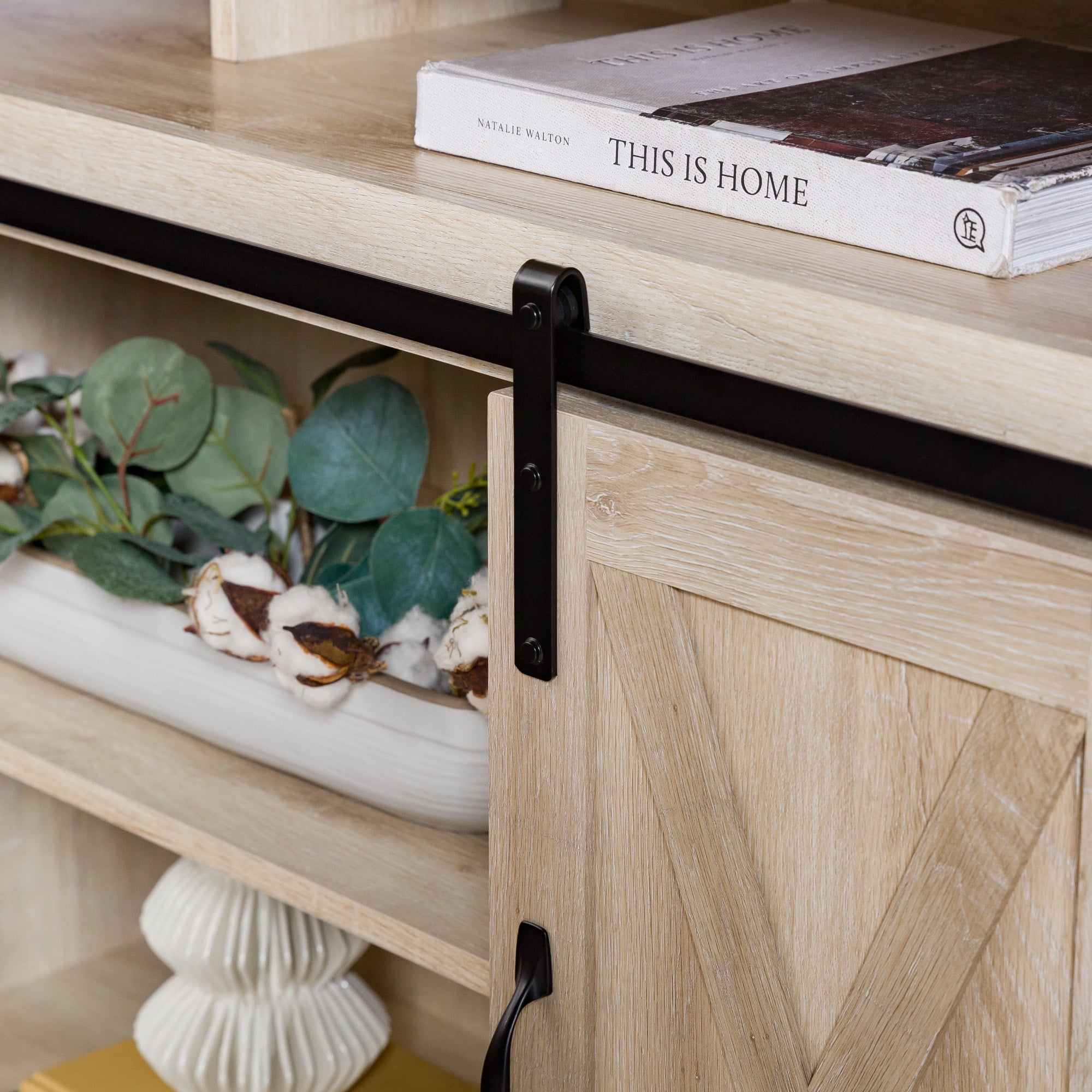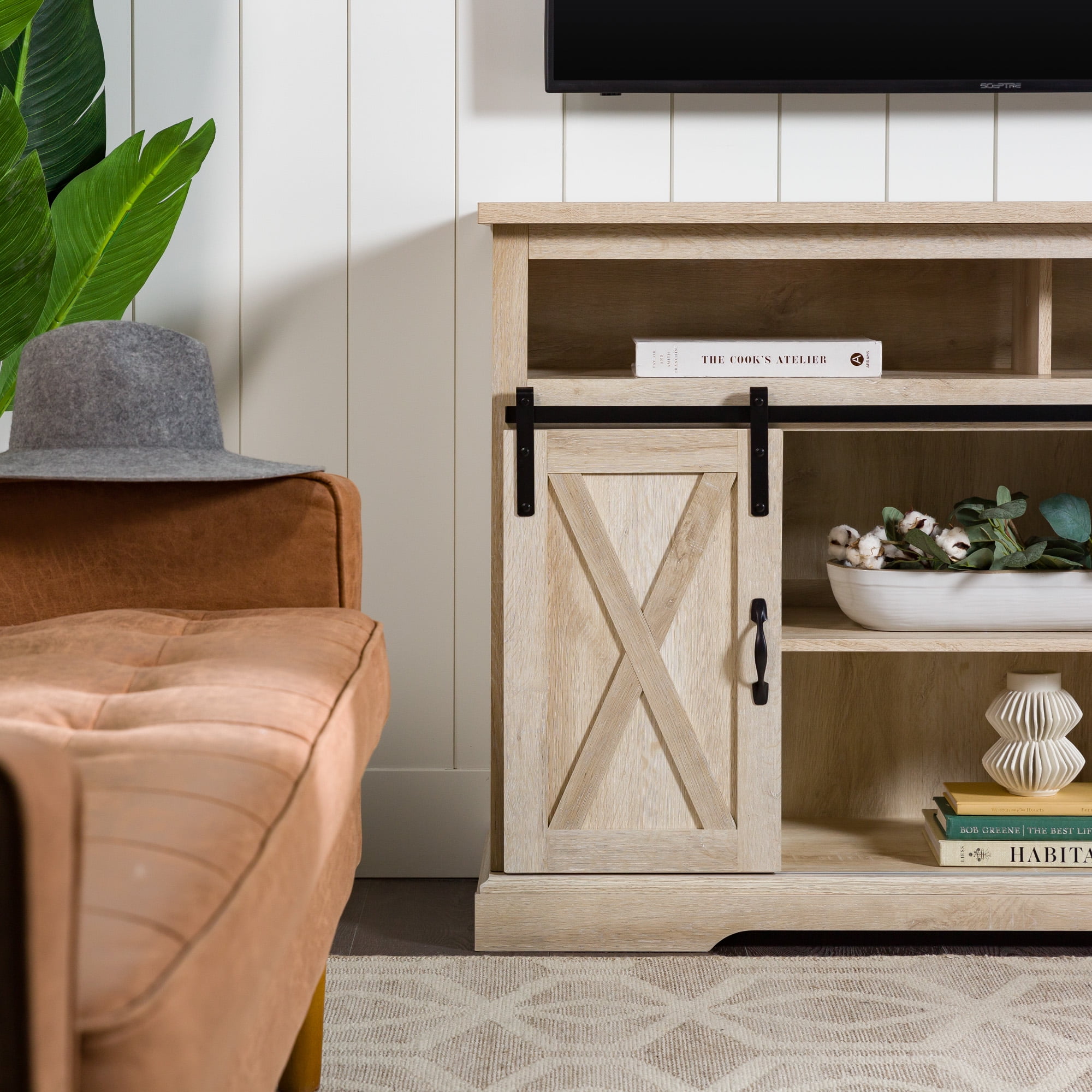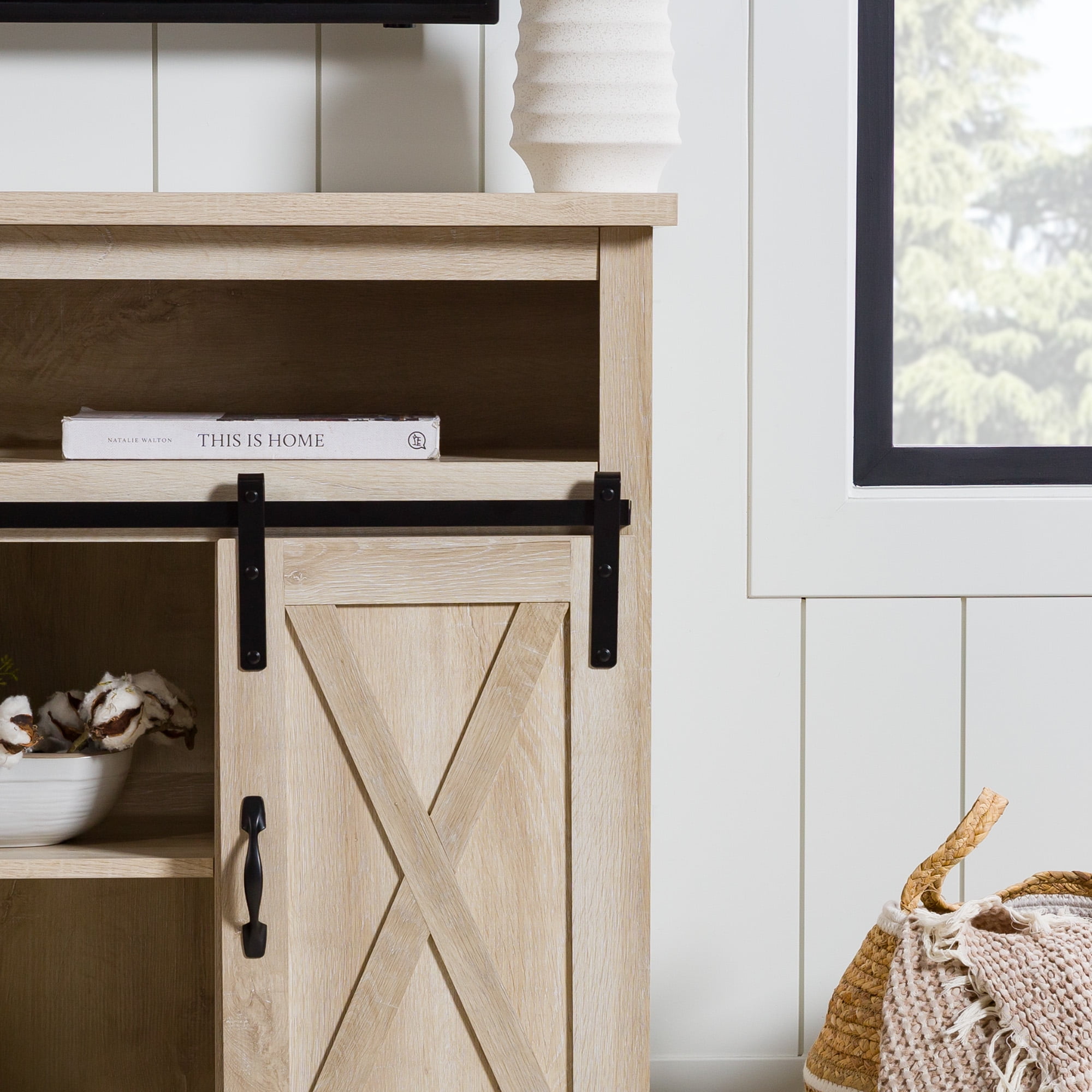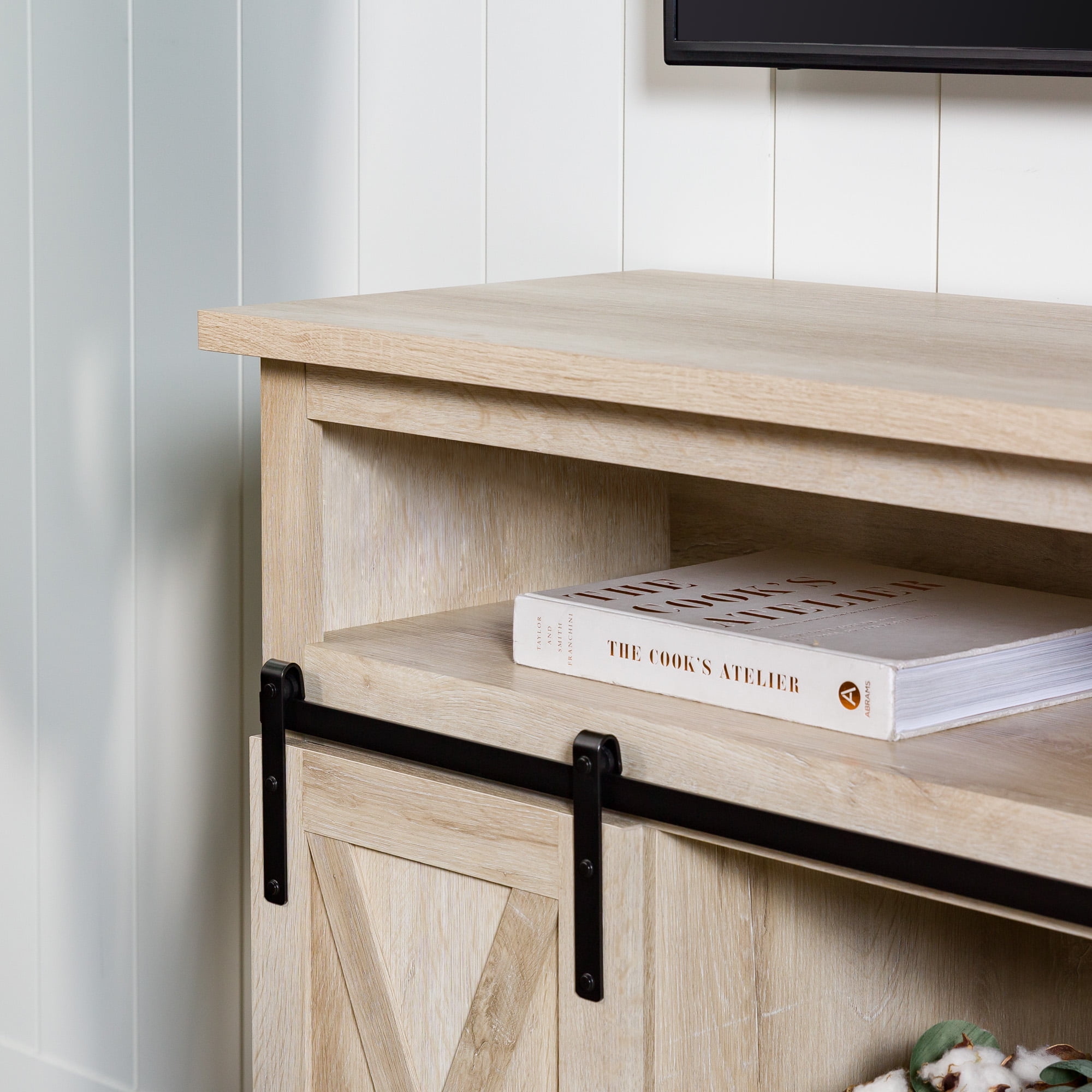 Woven Paths Farmhouse Barn Door TV Stand for TVs up to 60″, White Oak