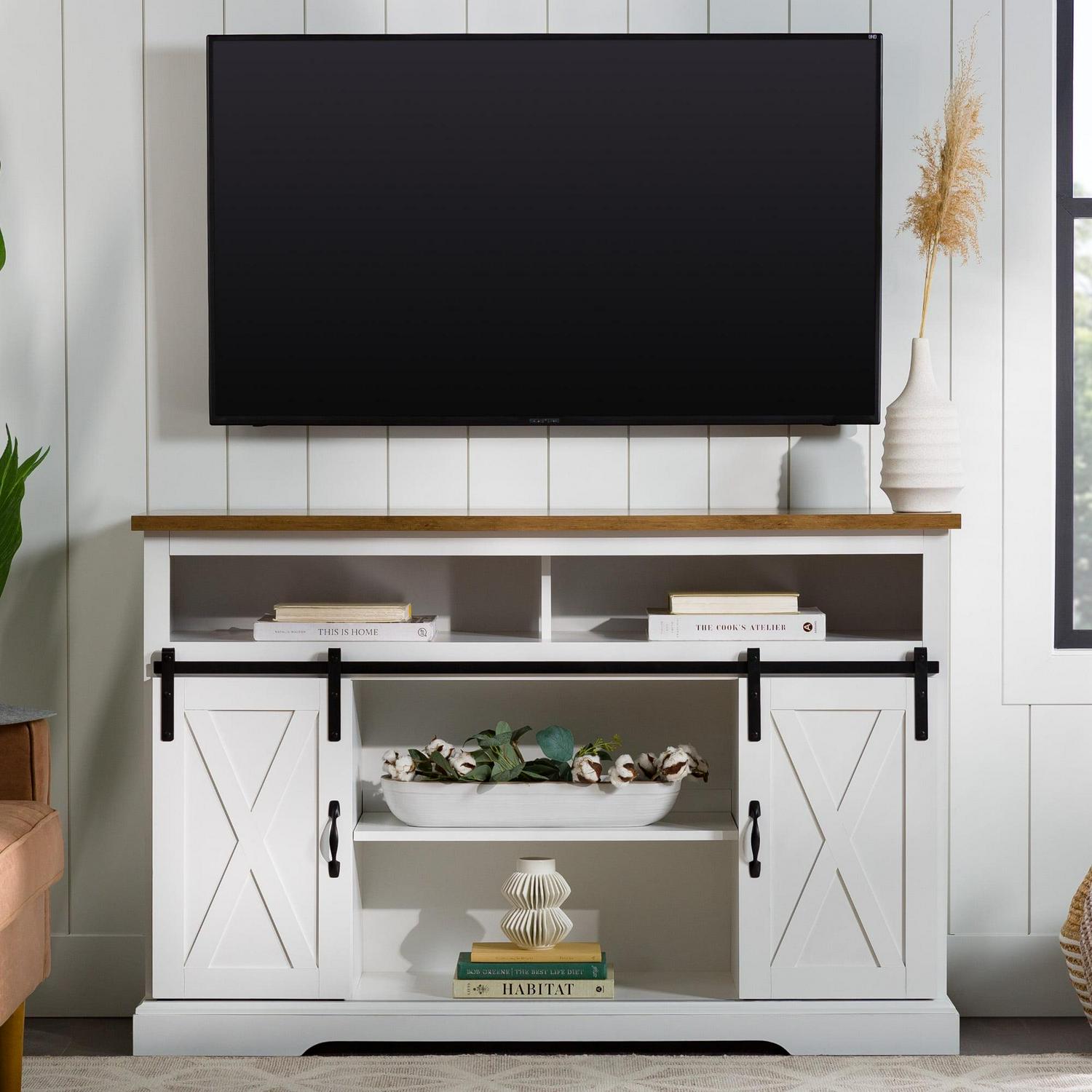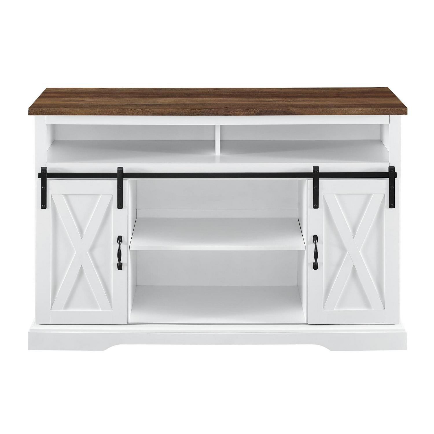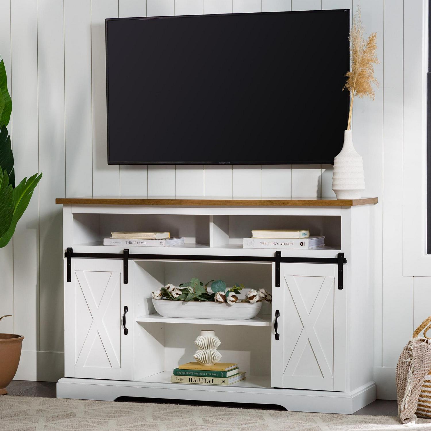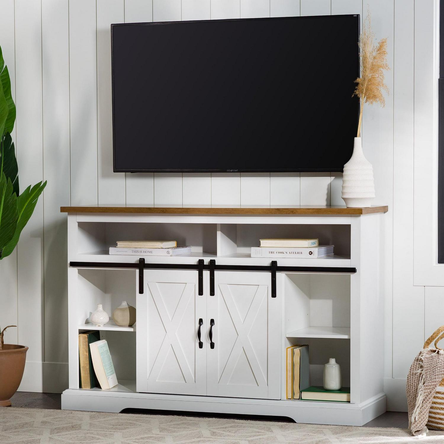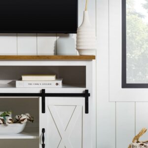 Woven Paths Farmhouse Barn Door TV Stand for TVs up to 58 , White