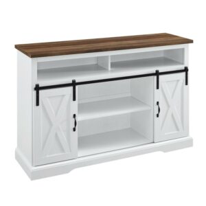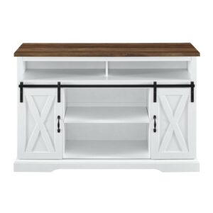 Woven Paths Farmhouse Barn Door TV Stand for TVs up to 58″, White/Reclaimed Barnwood:
