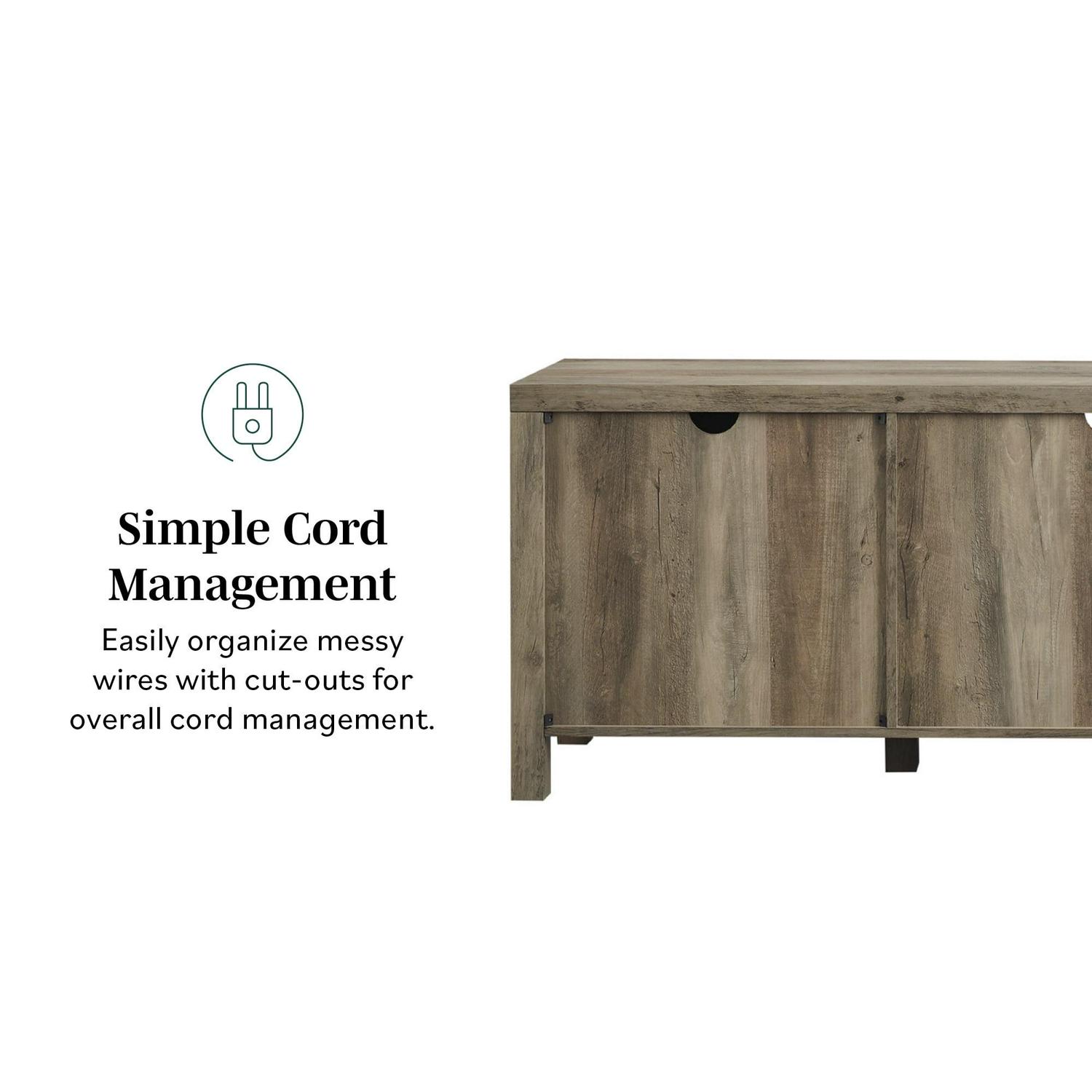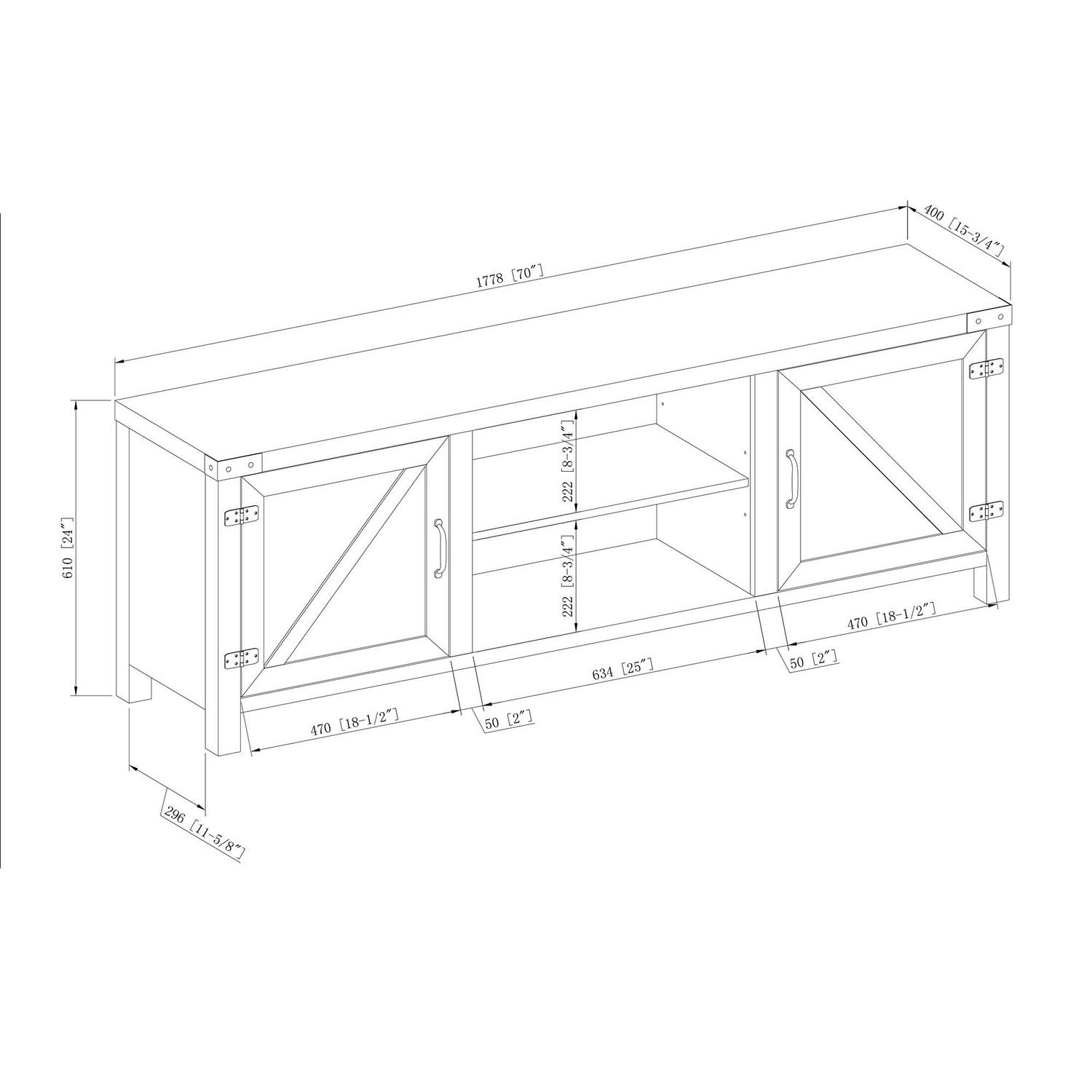 Introduce charming modern farmhouse style to your home with this Woven Paths Farmhouse Barn Door TV Stand. Constructed using high-grade MDF, durable laminate with gorgeous wood grain detailing, and metal accents on the hinges and handles, this entertainment center exudes a rustic and traditional appeal. It features barn door cabinet doors, open and closed storage, and adjustable shelving for overall stylish functionality. Hideaway your books, remotes, DVDs, and more behind the side cabinet doors and keep your electronics on the open shelving for easy access to all. The cord management helps keep electronic wires organized. Use in your bedroom as a storage console, in your living room as a TV stand to hold up to an 80-inch TV, or as a buffet table in your dining room for decor and extra kitchenware. This versatile Woven Paths Farmhouse Barn Door TV Stand is one you’ll enjoy for years to come!