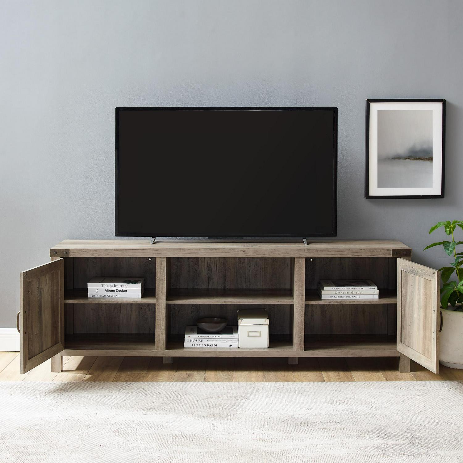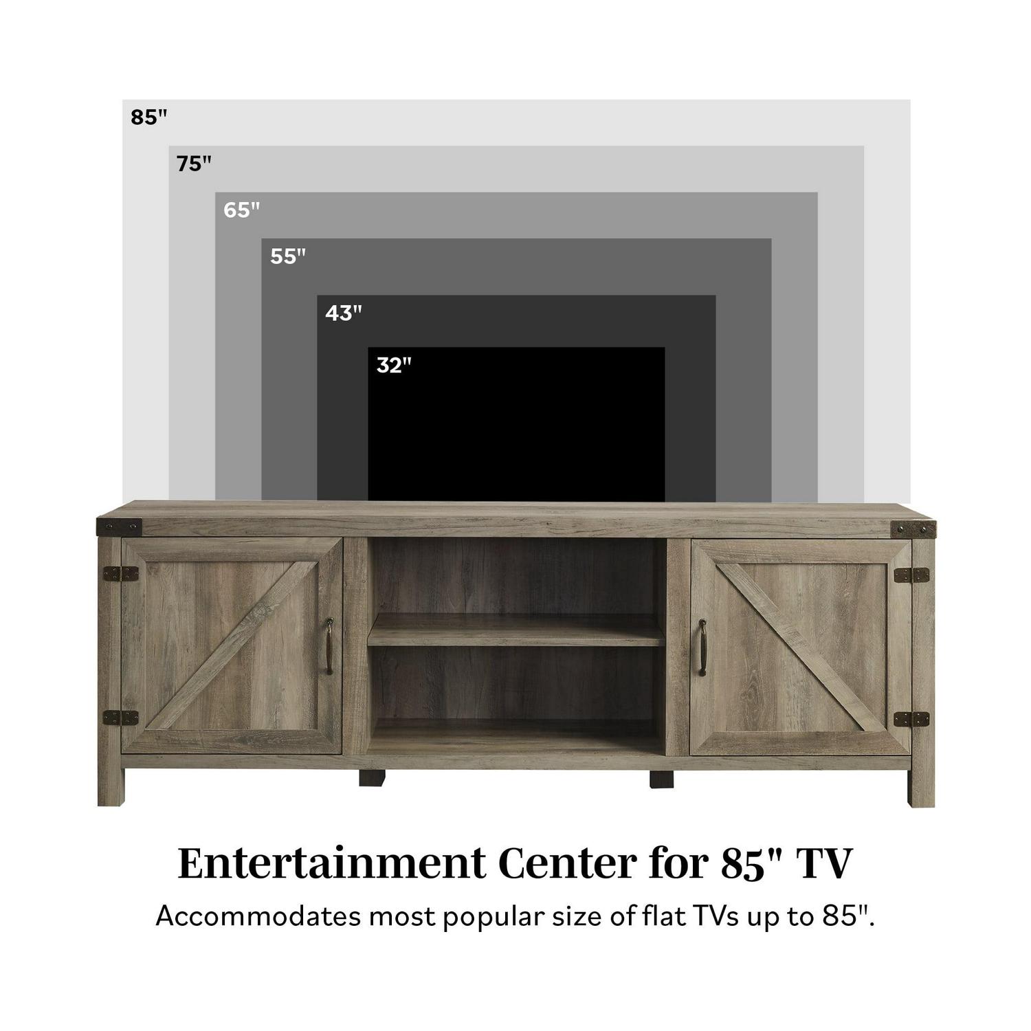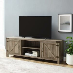 Woven Paths Farmhouse Barn Door TV Stand for TVs up to 80″, Grey Wash:
