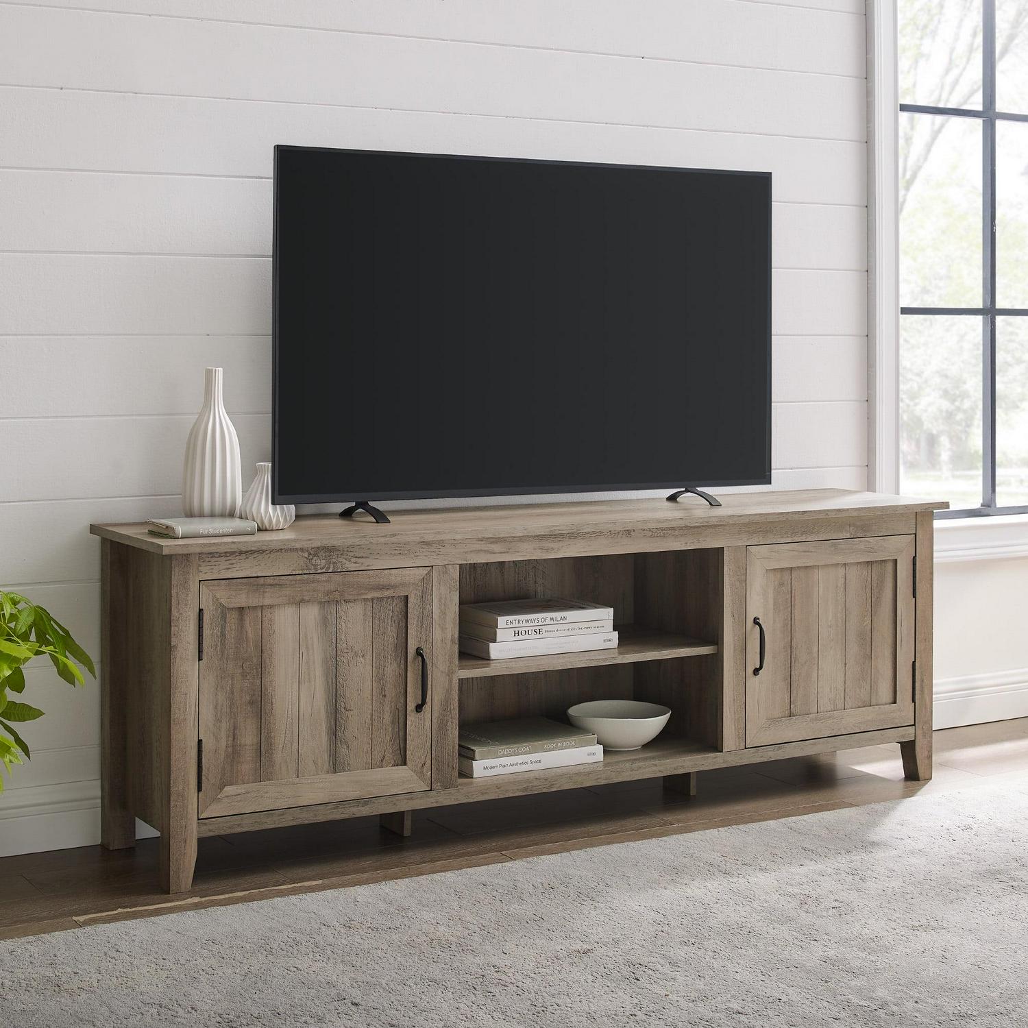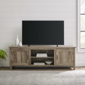 Woven Paths Farmhouse Grooved Door TV Stand for TVs up to 80″, Grey Wash: