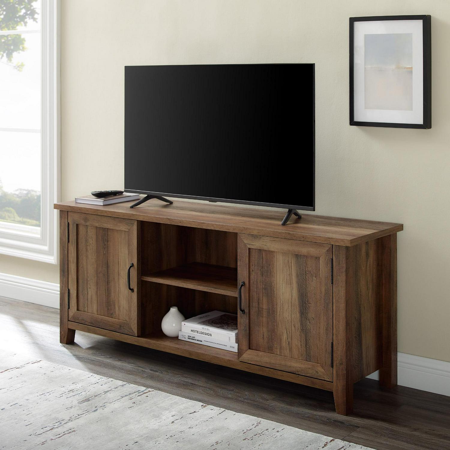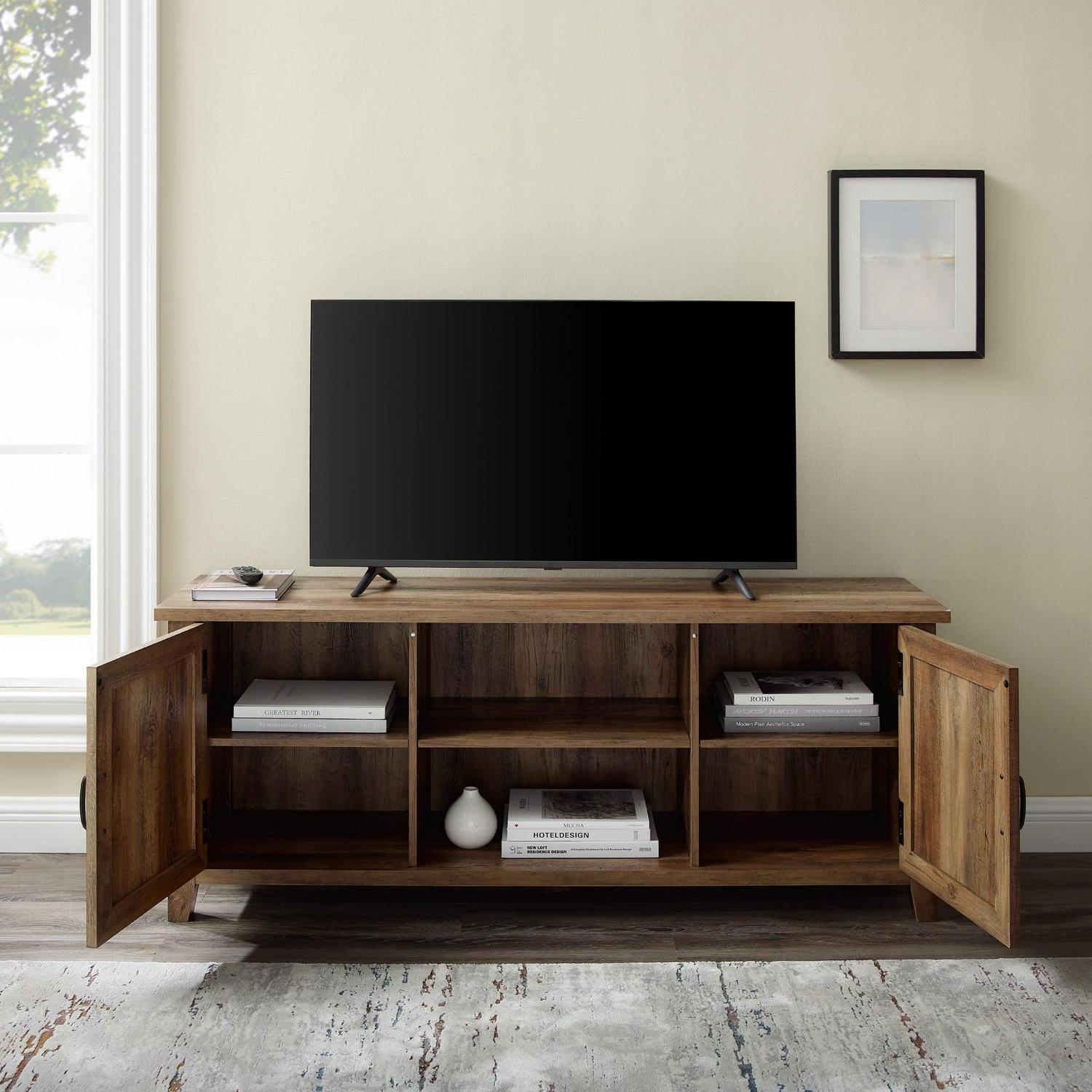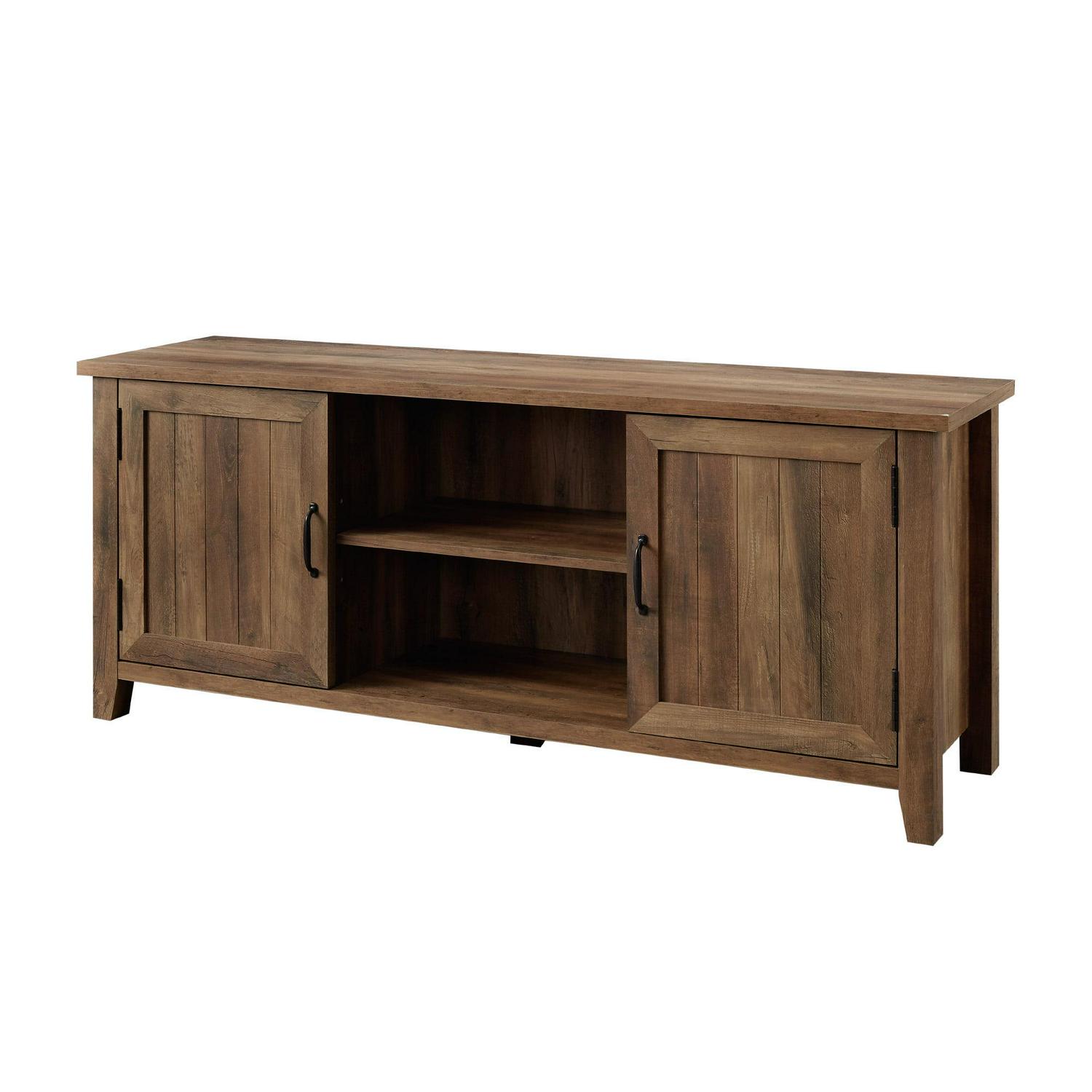 Woven Paths Franklin Grooved 2-Door TV Stand for TVs up to 65″, Reclaimed Barnwood: