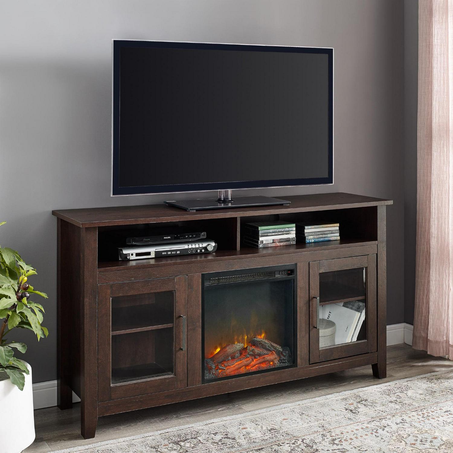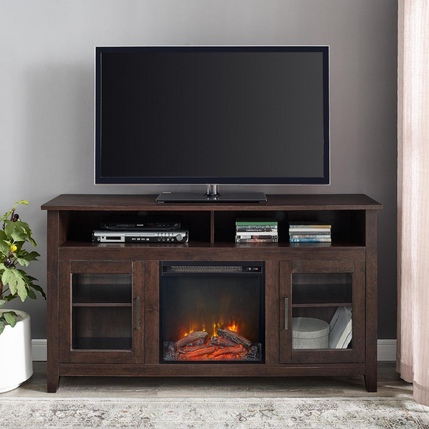 Woven Paths Highboy Glass Door Fireplace TV Stand for TVs up to 65″, Brown: