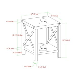 This farmhouse-styled Woven Paths Magnolia Metal X Set of 2 End Tables gives a rustic, urban industrial look to any room. With accents of metal throughout starting from each tabletop corner to the X design on the two sides of the table, these black-painted metal pieces work against the solid design, while the built-in shelf and tabletop provide function. The clean and simple lines are sure to add a touch of character and charm to your space while providing you with ample storing space. Make a statement in your space with the Woven Paths Magnolia Metal X End Table.