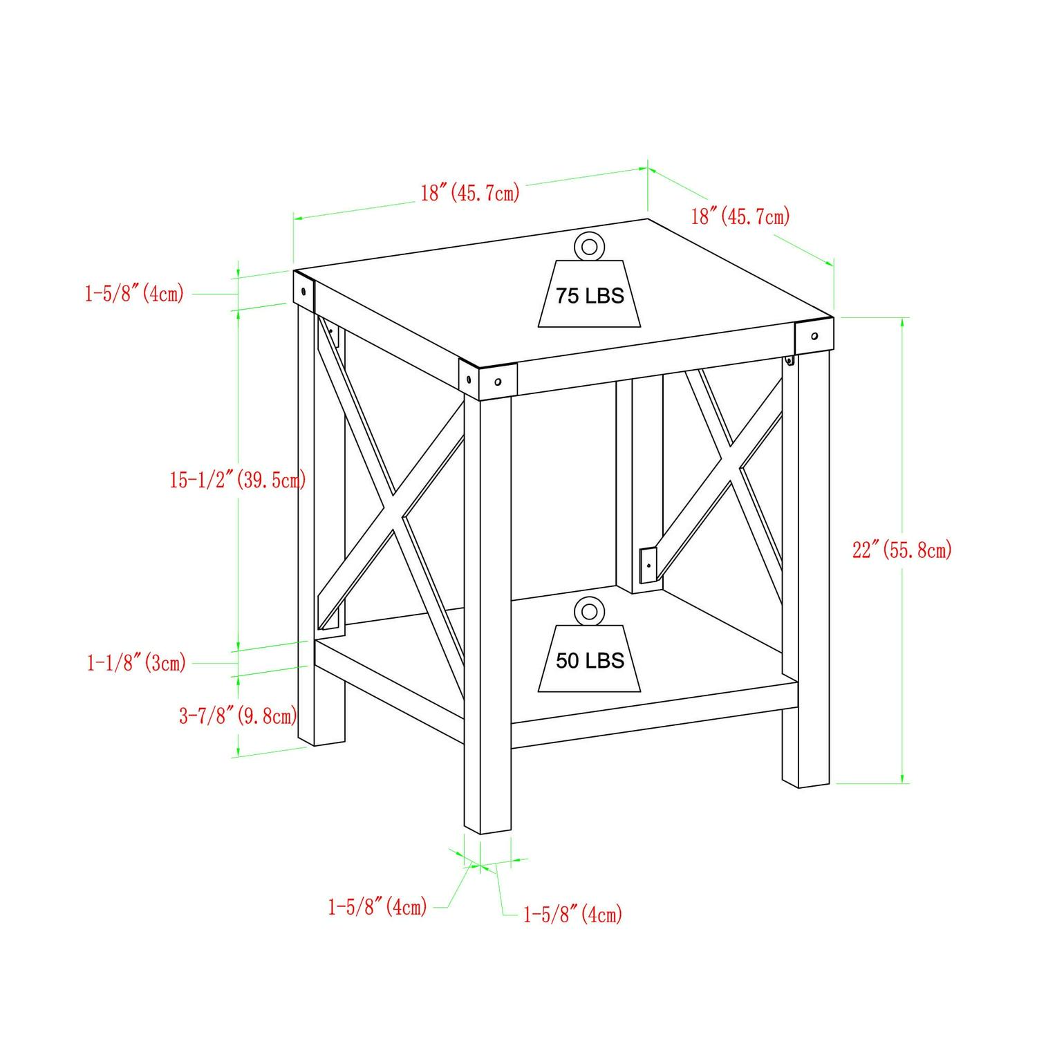 – Assembled Dimensions: 22″ H x 18″ L x 18″ W