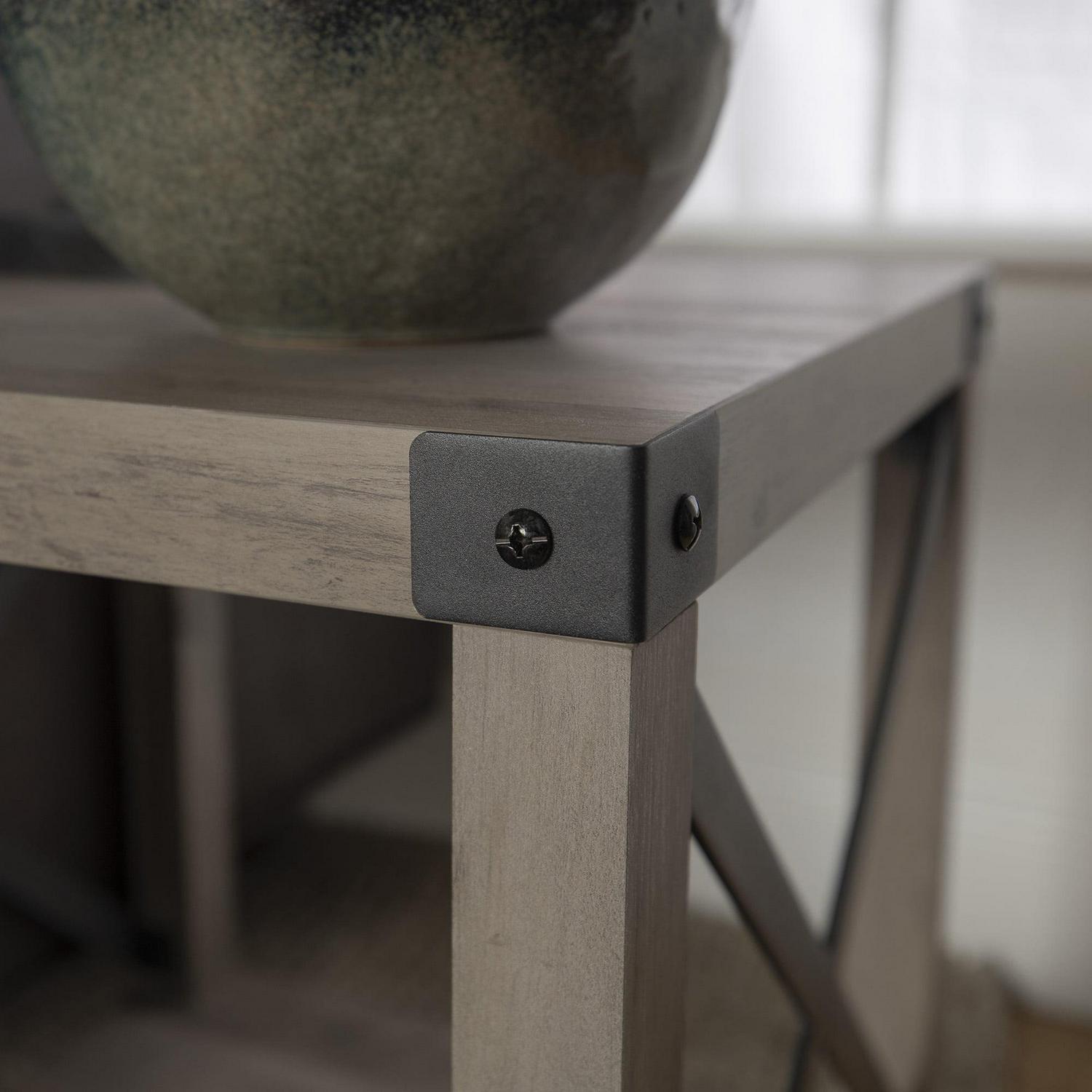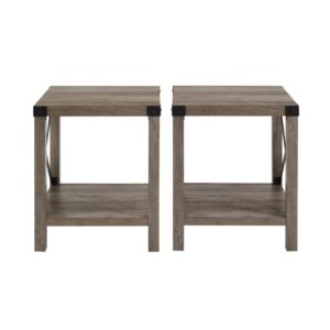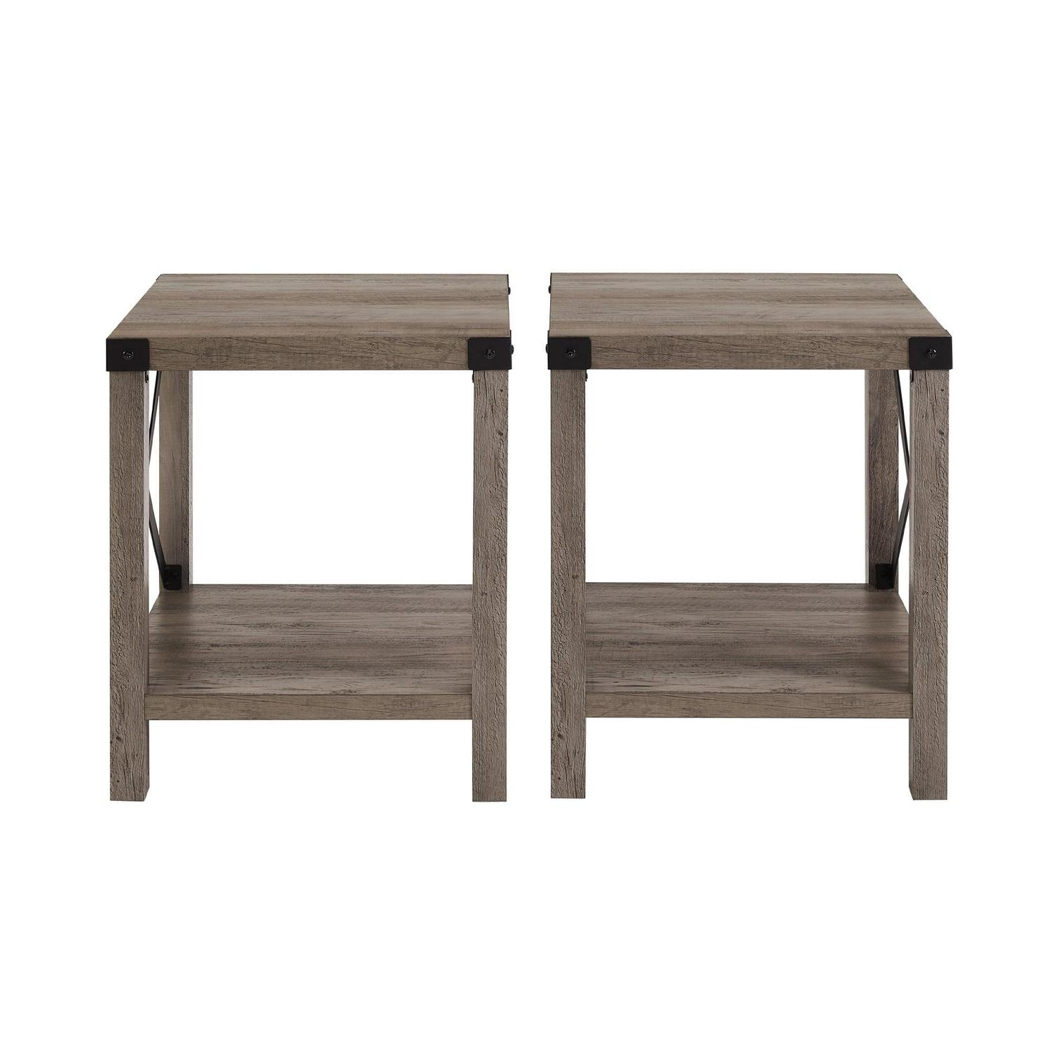 Woven Paths Magnolia Metal X Set of 2 End Tables, Grey Wash: