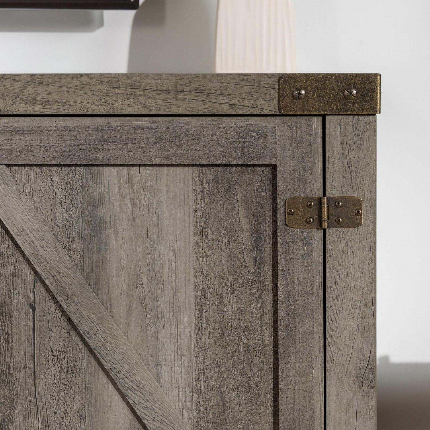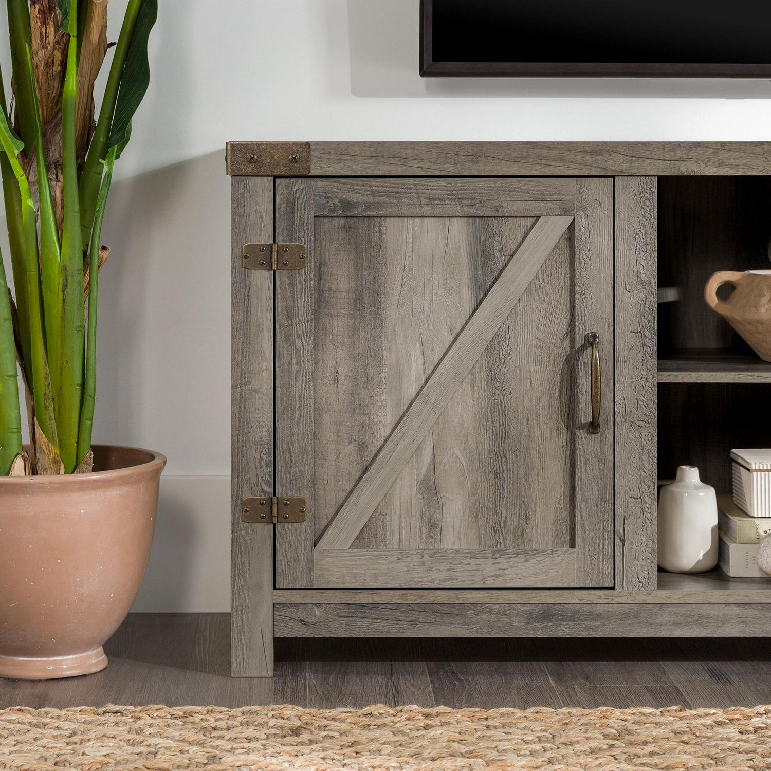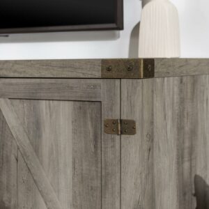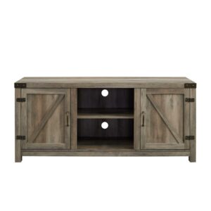 – Woven Paths Modern Farmhouse Barn Door TV Stand for TVs up to 65″, Grey Wash