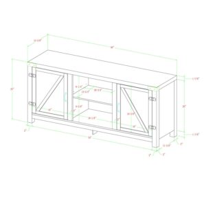 Offer up extra storage space in your home with this Modern Farmhouse Barn Door TV Stand from Woven Paths. Include our barn door style TV stand in your home to not only enhance the decor of your living area, but create ample storage for all of your media, accessories, and more. This entertainment center is made of durable, high-grade MDF and can support most TVs up to 65 inches. As a storage console, it will keep your living room looking neat while also giving it a homespun feel. This barn door TV stand in your living room will bring a charming, country feel. Features concealed storage space behind the barn-styled side doors with adjustable shelving to fit your media and accessories, while having a mix of rustic and modern farmhouse style. It’s the perfect addition that will keep your living room looking neat and give it a homespun feel. (Dimensions: 58 inch W x 16″ D x 24″ H; Weight: 87 lbs.)