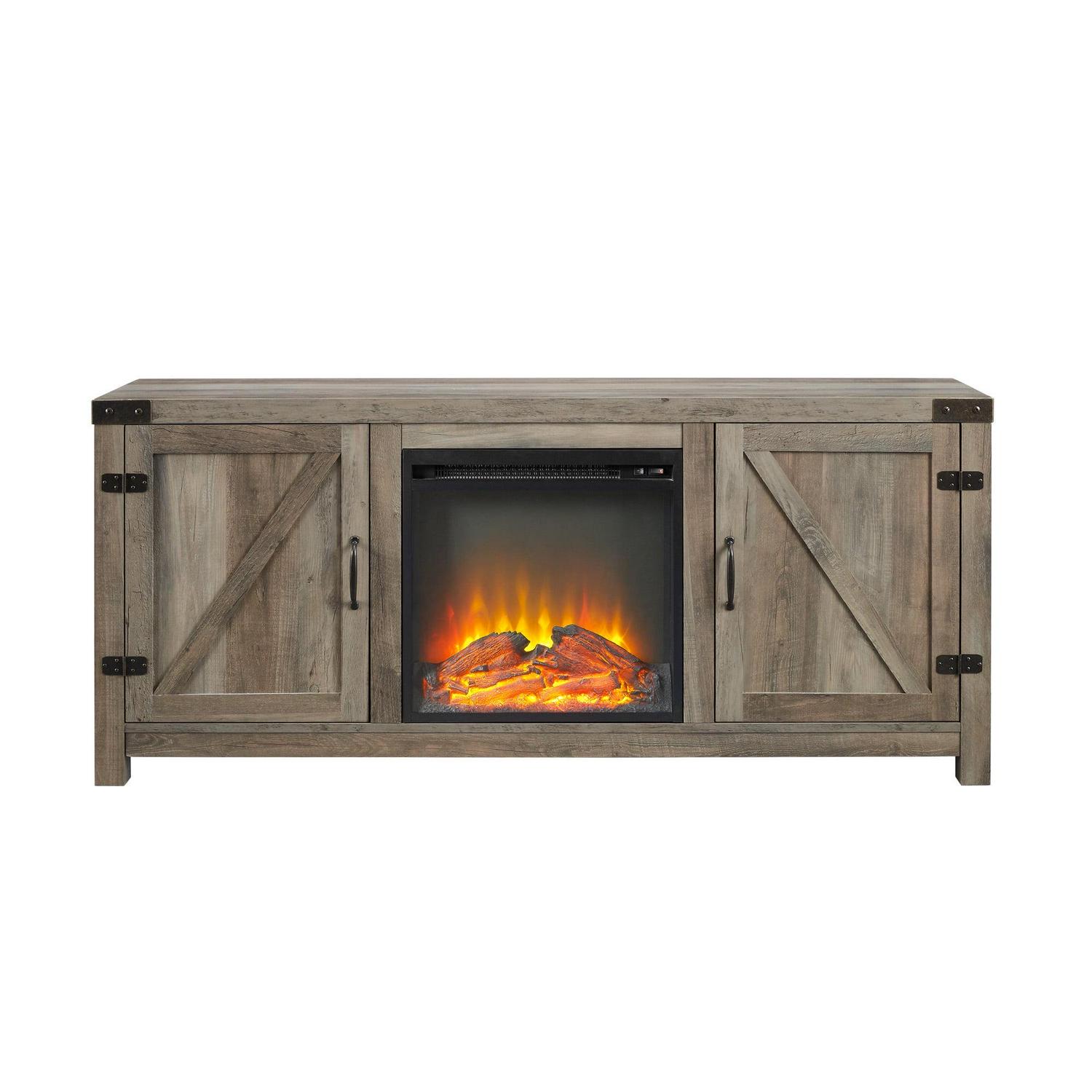 Woven Paths Modern Farmhouse Fireplace TV Stand for TVs up to 65″, Grey Wash: