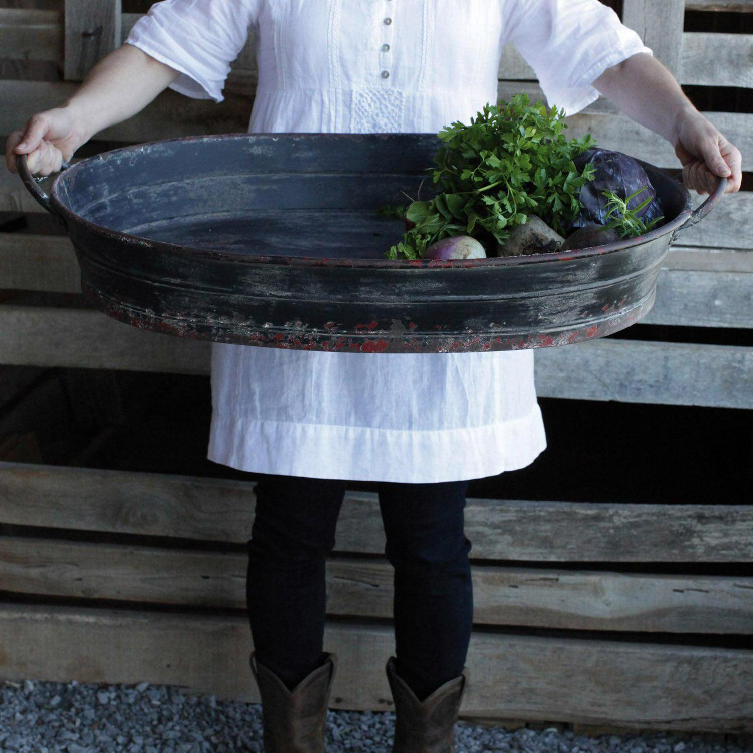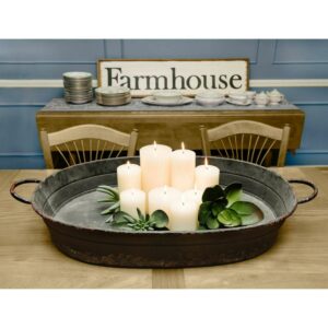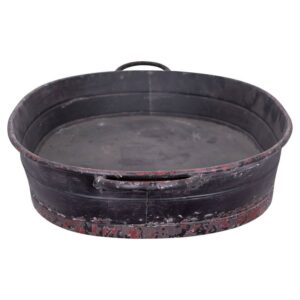 The Woven Paths Rustic Iron Oval Tray with Distressed Black Finish adds a fun element to your home. Use it to give your next gathering a bold dose of rustic style. This decorative tray has a dark finish and works well for serving drinks to family and friends. It’s easy to carry, and also doubles as a fabulous display on a table or shelf. This metal tray has a pleasing oval shape and is suitable for holding various items such as trinkets for added appeal.