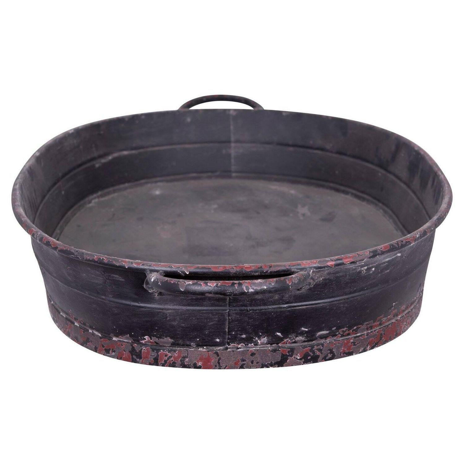 Woven Paths Rustic Iron Oval Tray with Distressed Black Finish: