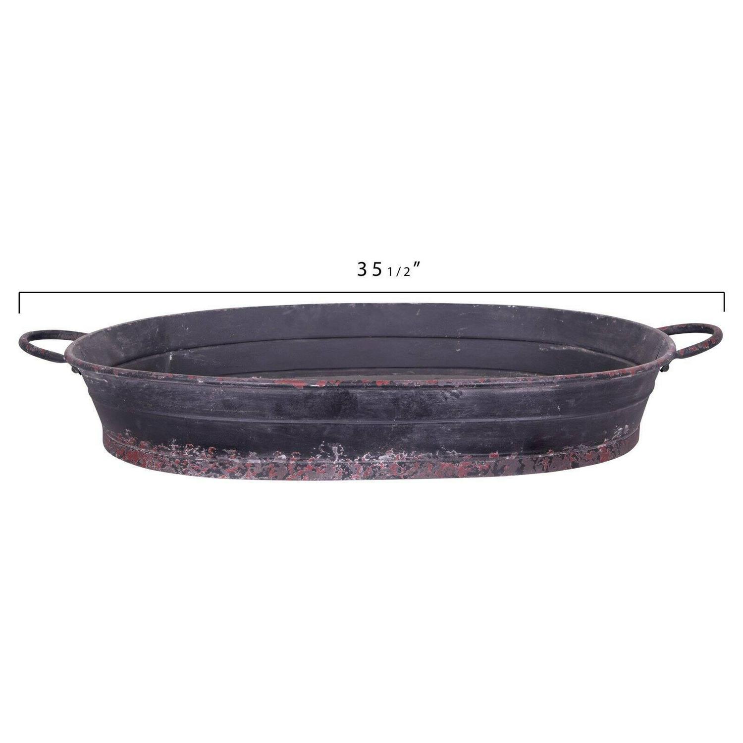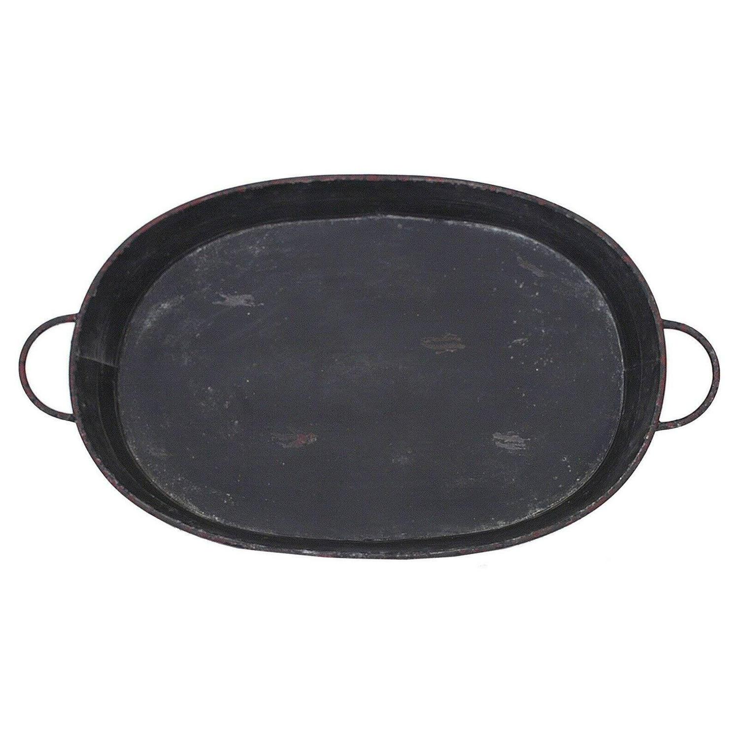 Woven Paths Rustic Iron Oval Tray with Distressed Black Finish
