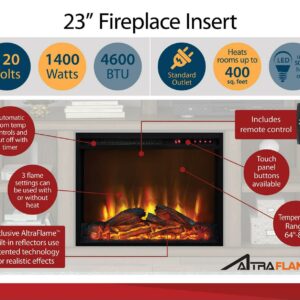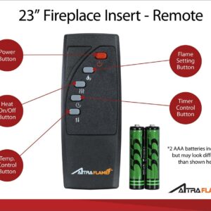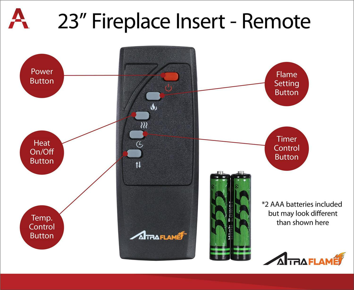 – Console comes with a 23 electric fireplace insert with a remote control (batteries included) to create the perfect room temperature using LED lights