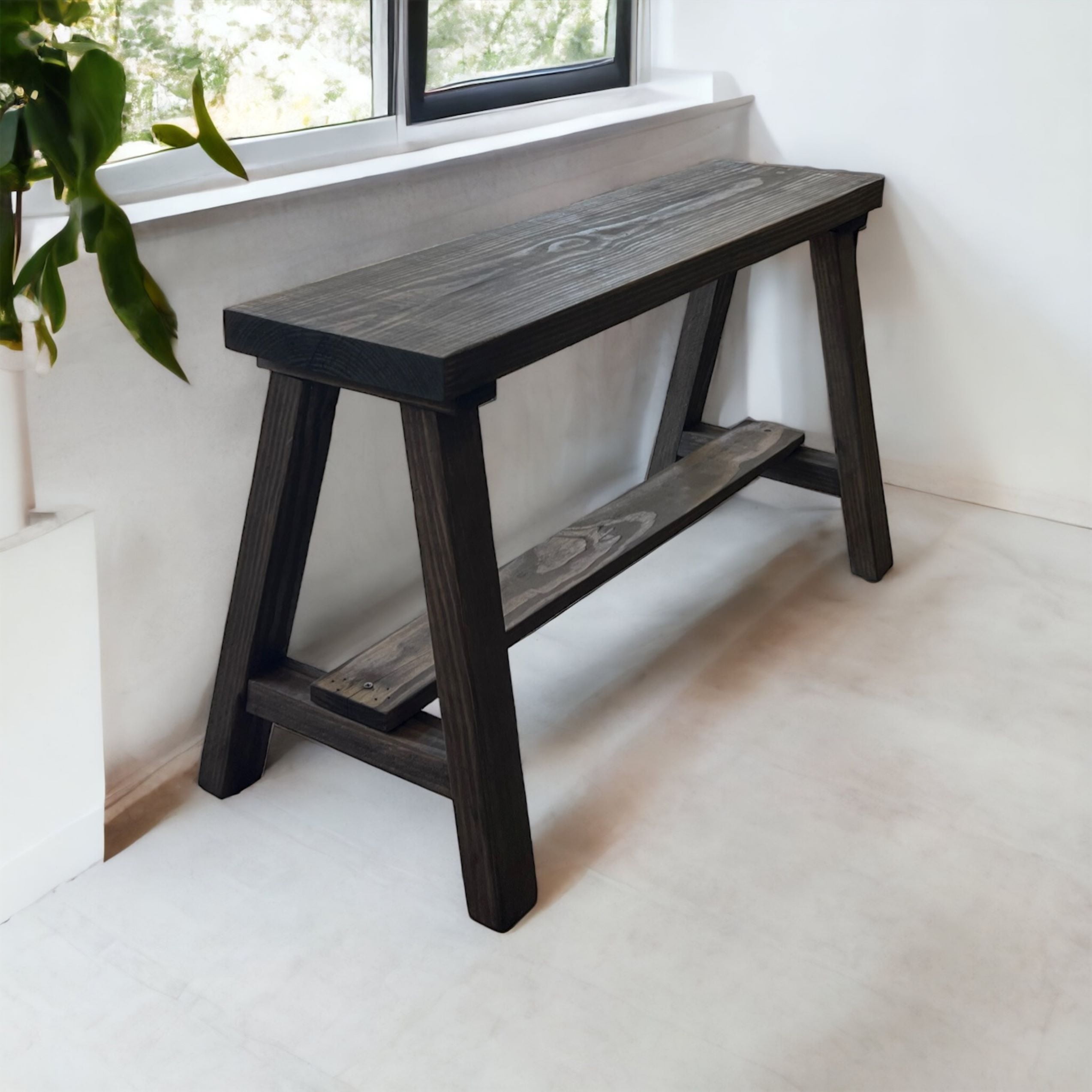 Sturdy, solid wood construction adds contemporary farmhouse style Clean lines with a touch of farmhouse, rustic charm Add extra seating for guests with a simple home upgrade Entry bench with simple design Fully assembled Color: Dark Brown