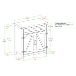This 30-inch Woven Paths Farmhouse Sliding Barn Door Accent Cabinet is full of closed storage options. It comes with two doors and a drawer with telescoping metal drawer glides that provide spacious accommodations for magazines and spare throws. Behind the doors, there is an adjustable shelf that you can place however best suits your storage needs. The exposed hardware and handles feature an antique bronze metal finish that enhances its rustic tone and offers a decorative touch to any space. Elevate your home decor with the Woven Paths Farmhouse Barn Door Accent Cabinet.