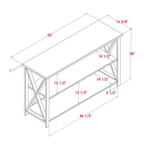 - Assembled Product Dimensions (L x W x H): 52.00 x 16.50 x 30.00 Inches