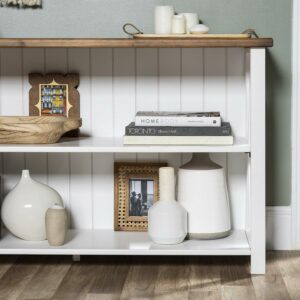 Woven Paths Solid Wood Storage Console Table, White/Reclaimed Barnwood
