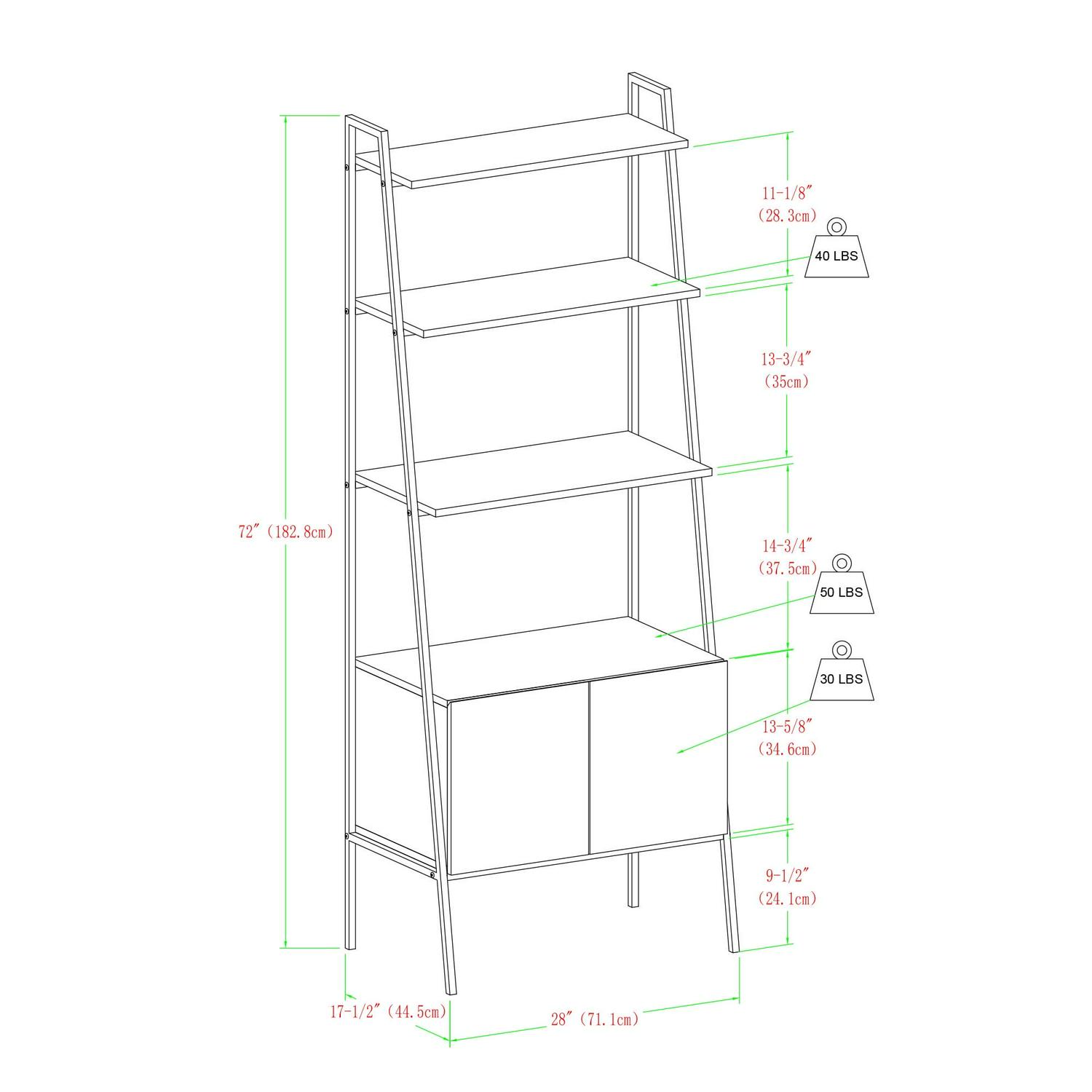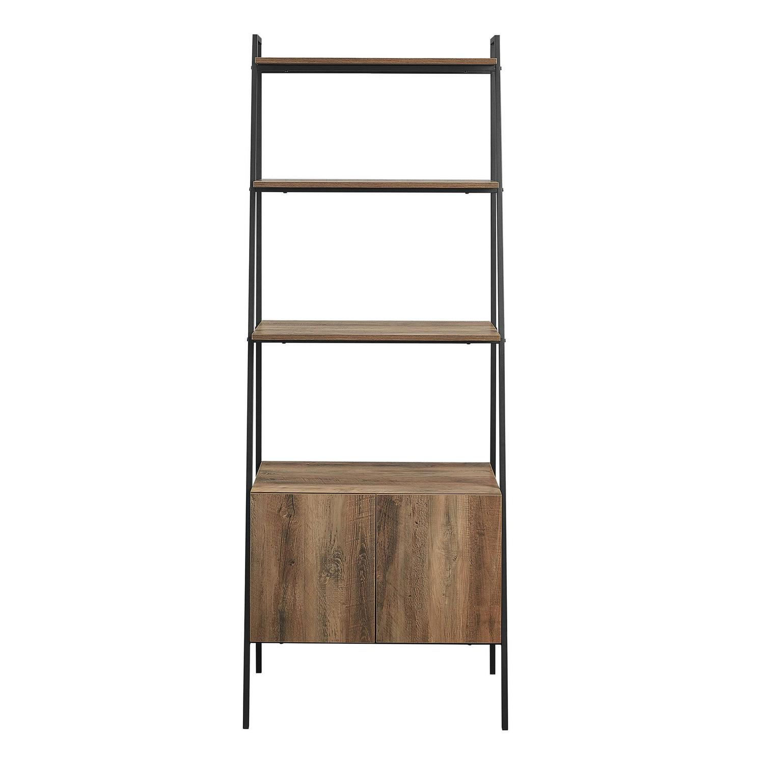 Transform your home with this functional and stylish Woven Paths Urban Industrial 4-Shelf Ladder Bookcase. Three upper shelves and a lower cabinet are perfect for showcasing books or movies in a trendy fashion. The shelves and cabinet are held up on both sides from durable, angled painted metal for rustic flair. The shelves and cabinet are made from warp-resistant MDF, for a long-lasting piece. Showcase artwork, family vacation photos, or recipe books on this urban industrial style bookshelf while stashing unsightly items behind the doors of the cabinet. Add function and style to your home with the Woven Paths Urban Industrial 4-Shelf Ladder Bookcase.