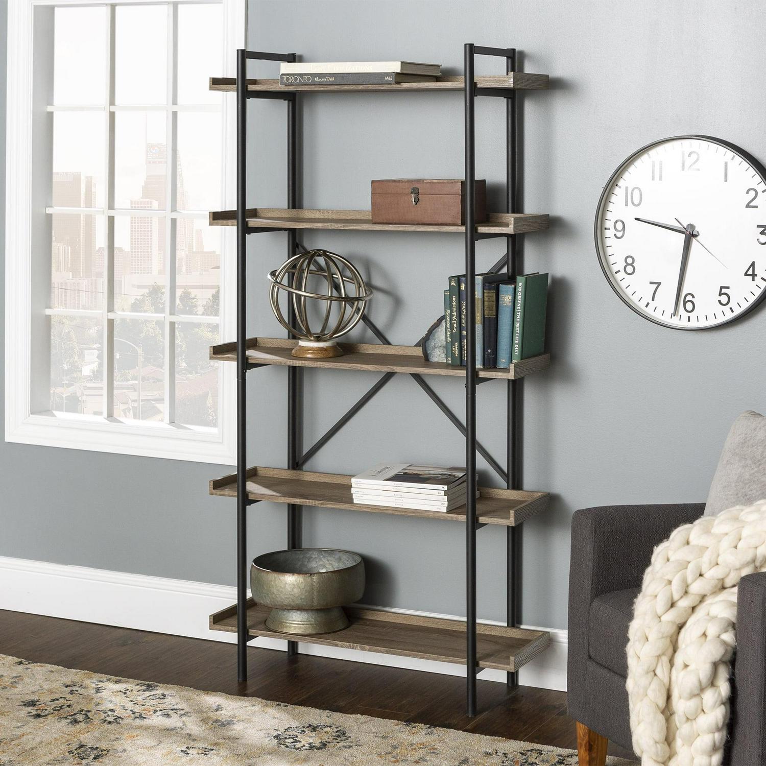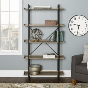 Flood your home with brilliant design and plenty of storage with the Woven Paths Urban Pipe Rustic Industrial Bookshelf. Five beveled shelves make this vertical shelf great for organization and display. Show off your growing plant collection or use this as a media tower where you can stack speakers, gaming consoles, and smart home devices. Use this as a classic bookshelf or keep it fresh by using it to show off your souvenirs. Whether you put this shelf in a bedroom, home office, or living room, you’ll be adding an industrial sensibility to your home while increasing your organizational options. This bookshelf also includes wall-fastening hardware for greater stability. Decorate your home with the Woven Paths Urban Pipe Rustic Industrial Bookshelf.