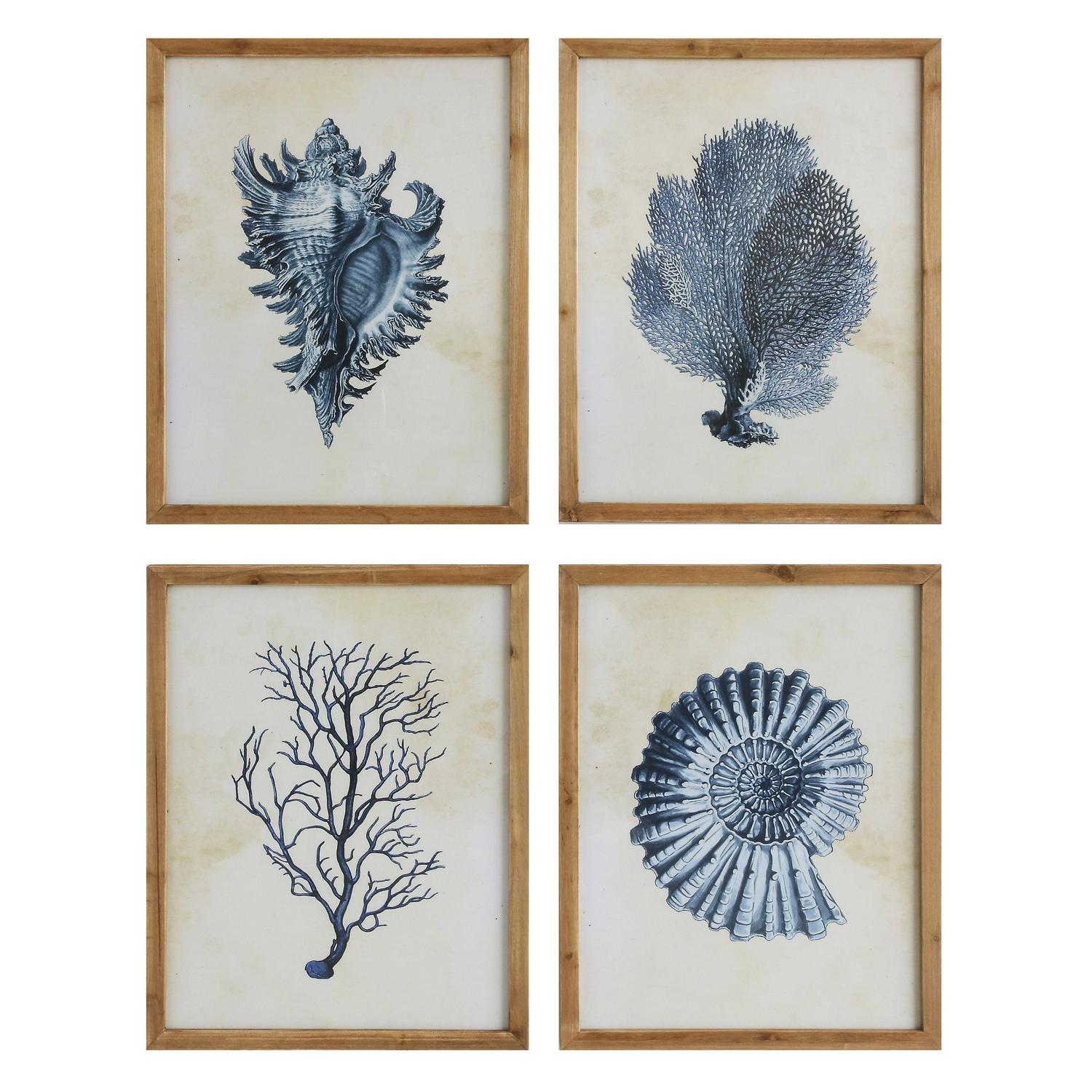 Woven Paths Wood Framed Wall Art with Blue Shells and Coral (Set of 4 Designs)