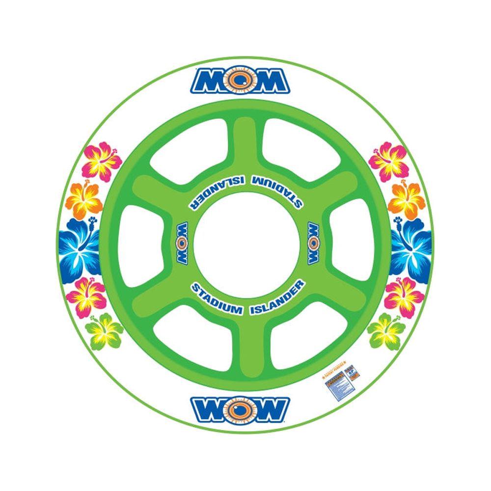 The 6 person Stadium Islander from WOW is an awesome value! It is over 8.5 feet in diameter and seats up to 6 adults very comfortably. The outer ring is 14 inches high and acts as a great backrest for chillaxing with your favorite people on your favorite body of water. Each seat has a mesh bottom to keep you cool during those hot summer days. The open center makes it easy to get on and off for the kids and the grandparents. The whole family can join in the fun! And to top it all off, it looks great. The Stadium Islander is exactly what you need for a great day at the lake.