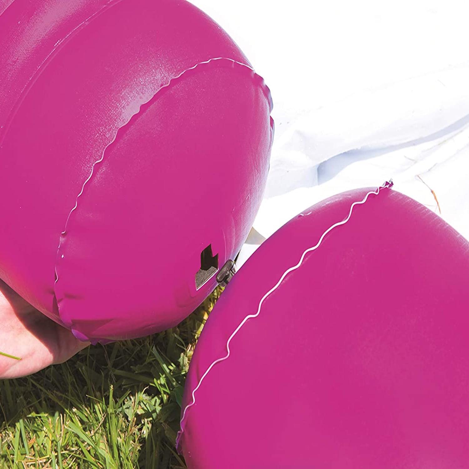 – Pool Slide – The water slide comes with 6 giant inflatable bowling pins with a water ballast system so they stay standing up on your favorite slope. Each pin is 24 inches tall and 10 inches wide