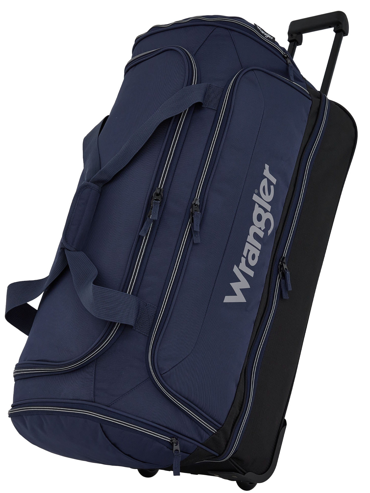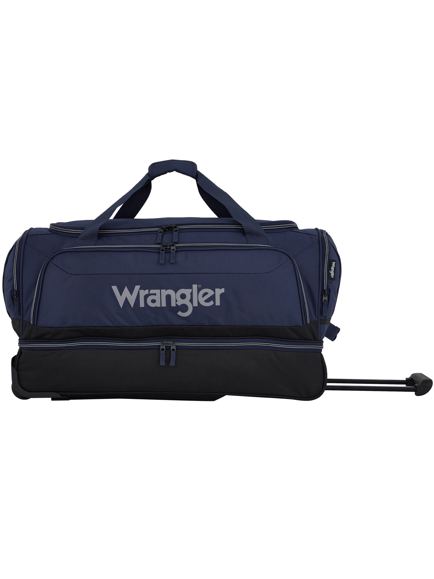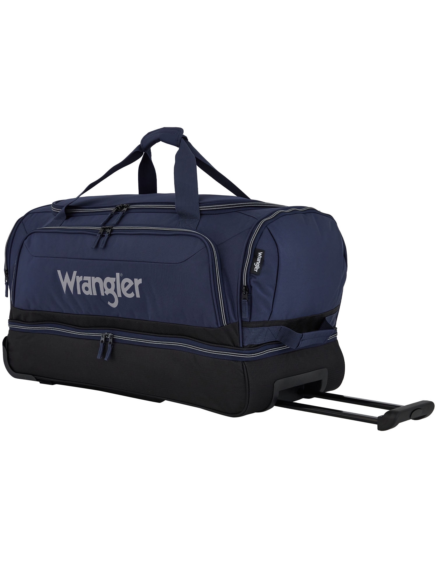 Wrangler 30″ Polyester Drop-Bottom Rolling Travel Duffel w/ Interior Toiletry Pocket, Navy