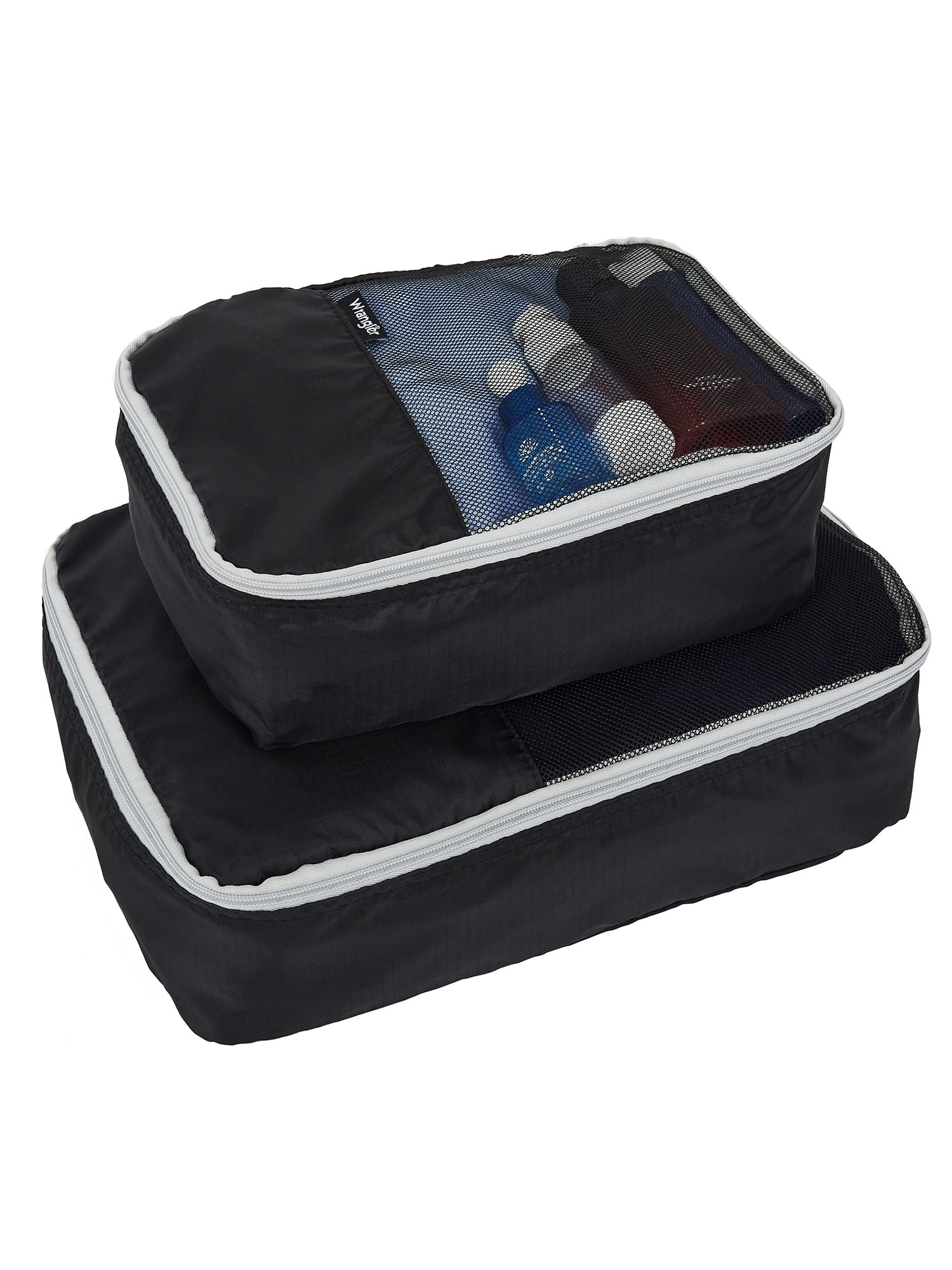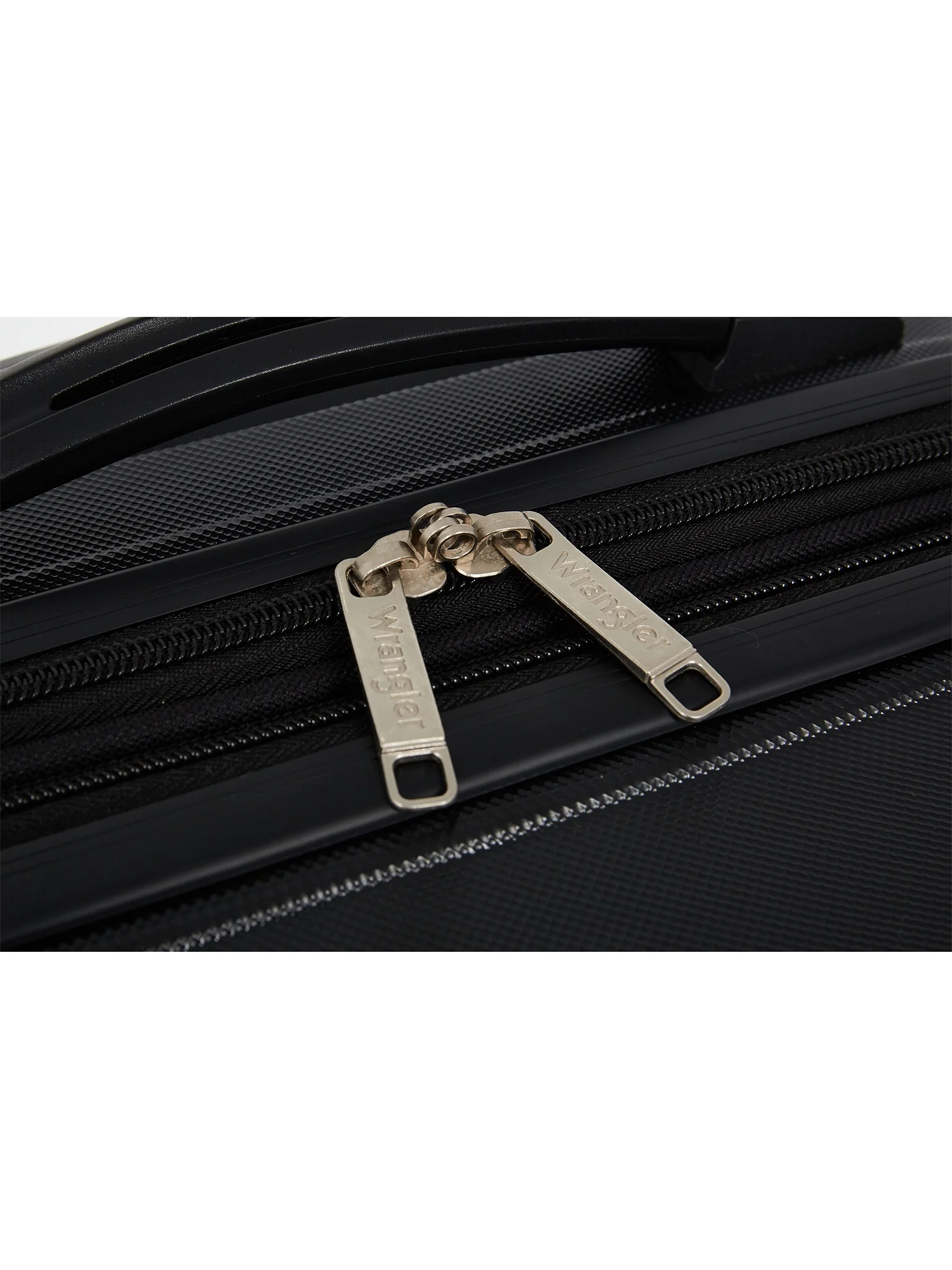 Wrangler is the foremost global leader, innovator, and manufacturer of Americana fashion, heritage apparel, and high-quality denim wear. It is now seeking to utilize its rich history in luggage. Travel in riveting style with Wrangler’s 4PC Hardside Spinner Luggage Set. Well-equipped, durable, and robust, this 4-piece set includes a 25” checked suitcase, 20” rolling carry-on, and a 12” packing cube on top of a 15” larger packing cube to suit your organizational needs. The stylish hard side exterior is designed with three rows of diagonal lines, invoking a sense of movement and action that embodies the most exciting and thrilling aspects of why we travel. The hard side is 100% ABS, a durable and flexible material that is made to absorb shocks and impacts on contact and ‘flex’ back into its original shape. In addition, this set comes loaded with more quality features. The push-button telescopic handle with a contoured grip paired with the 360-degree multi-directional spinner wheels create a completely weightless and smooth rolling experience that relieves any pressure from your arms, especially if the suitcase is packed to the brim. The fully-lined interior is spacious and comes with a divider panel to separate and organize your packing essentials. This feature can be further utilized with packing cubes to help compartmentalize your packing needs. Measured at 25” x 16.5” x 11” and 20” x 13.5” x 9”, this set has excellent value.