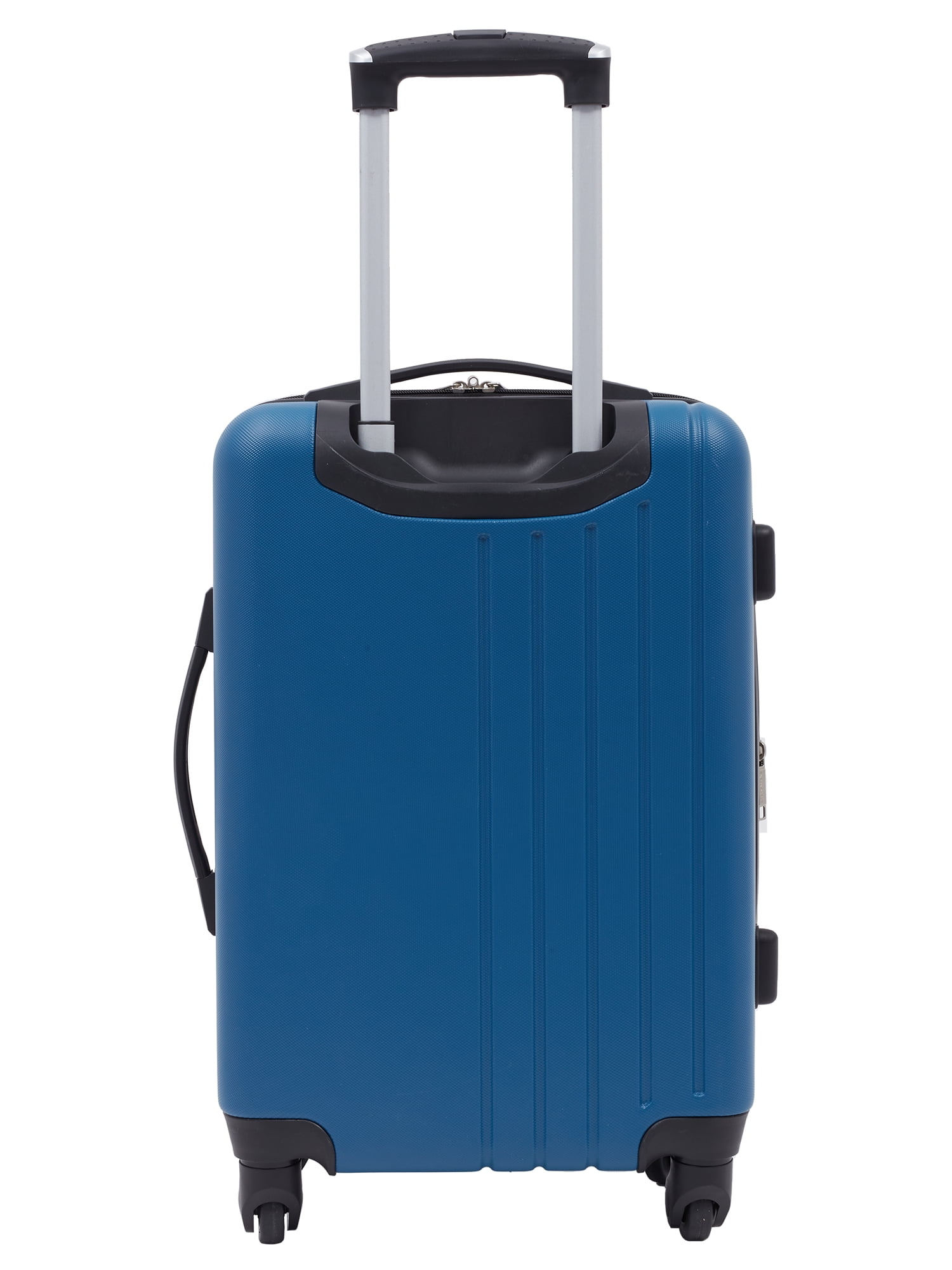 Push-button recessed locking trolley handle Top and side carry handles Fully-lined interior with compression straps Spinner wheels for 360° movement Expands for adding packing capacity