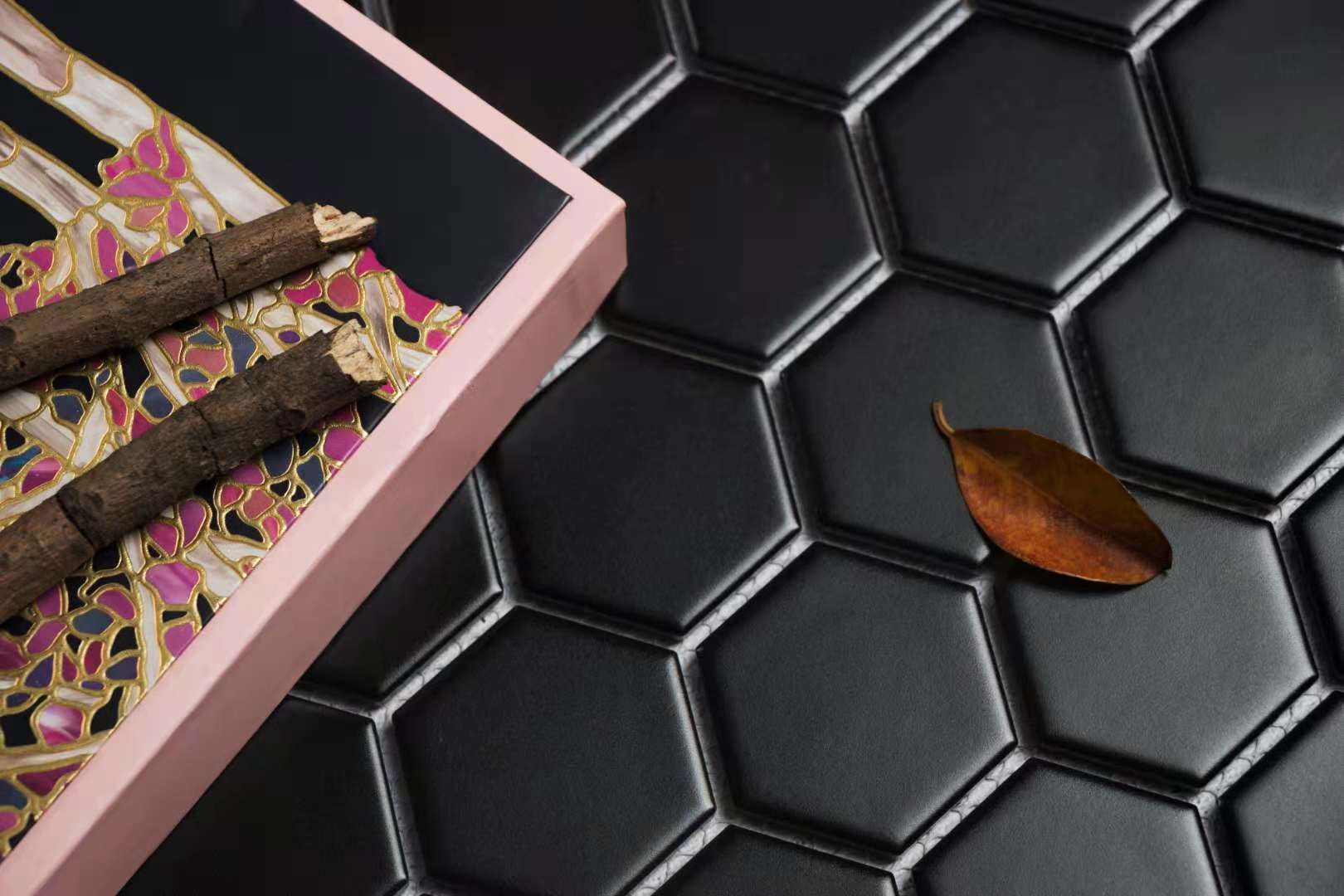 Our matte porcelain tiles are designed to be used on any floors and walls throughout the home. They are heat and water-resistant and can be installed outside as they are frost proof. They are perfect for residential and commercial use. Due to their matte finish, they are perfect for use on the floor. The tile is glazed and the color is burned into the surface of the tile so that they won’t fade, age or have significant color variations. The tiles come on a mesh-backed sheet making them easy to install. The glazed finish makes these tiles look beautiful in natural and artificial light, giving your room a stunning appearance no matter the time of day. Sheet Size: 10.5″ x 10.5″ x 6mm thick Color: Black Finish: Glazed Porcelain with Matte Finish Layout: Honeycomb