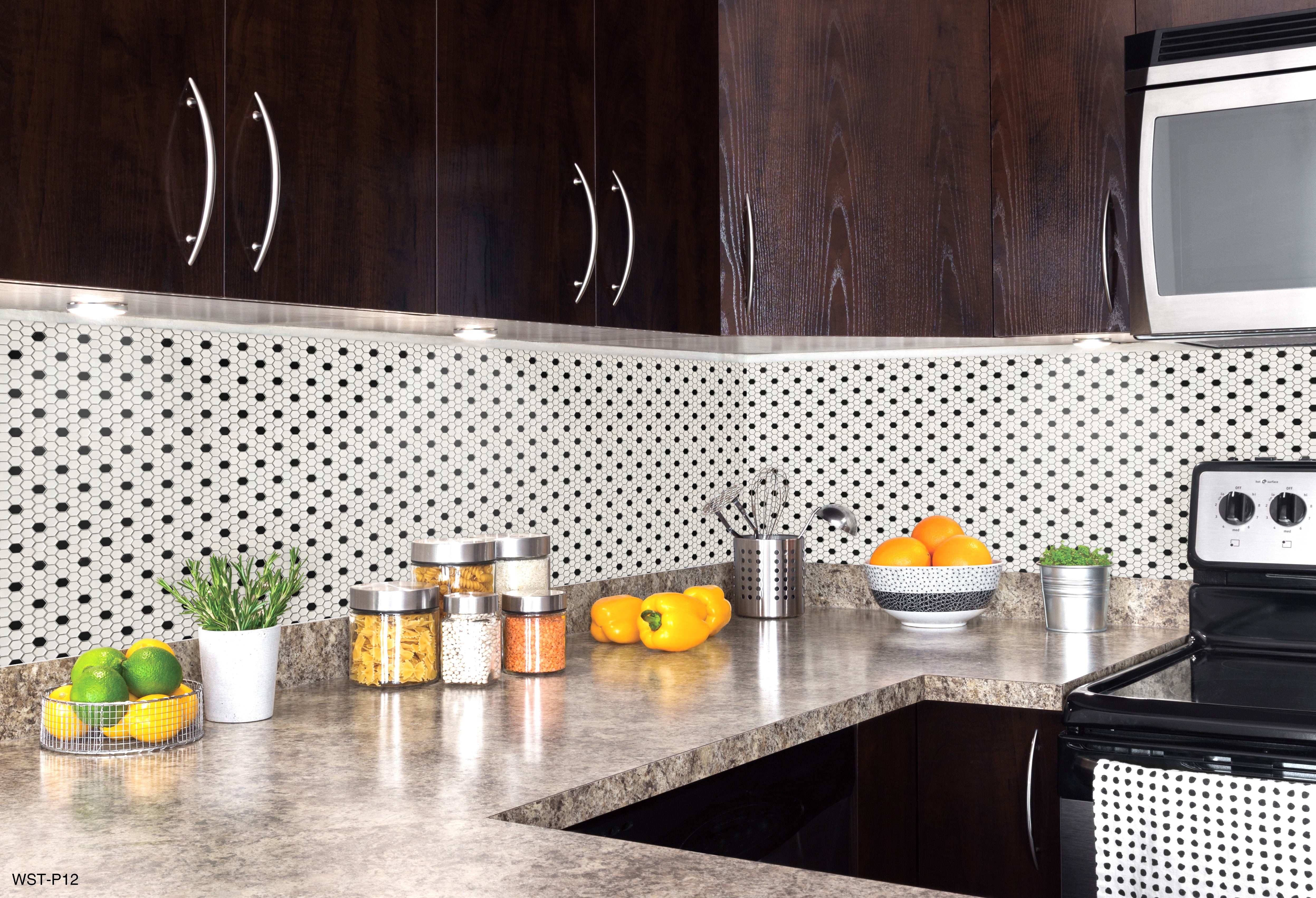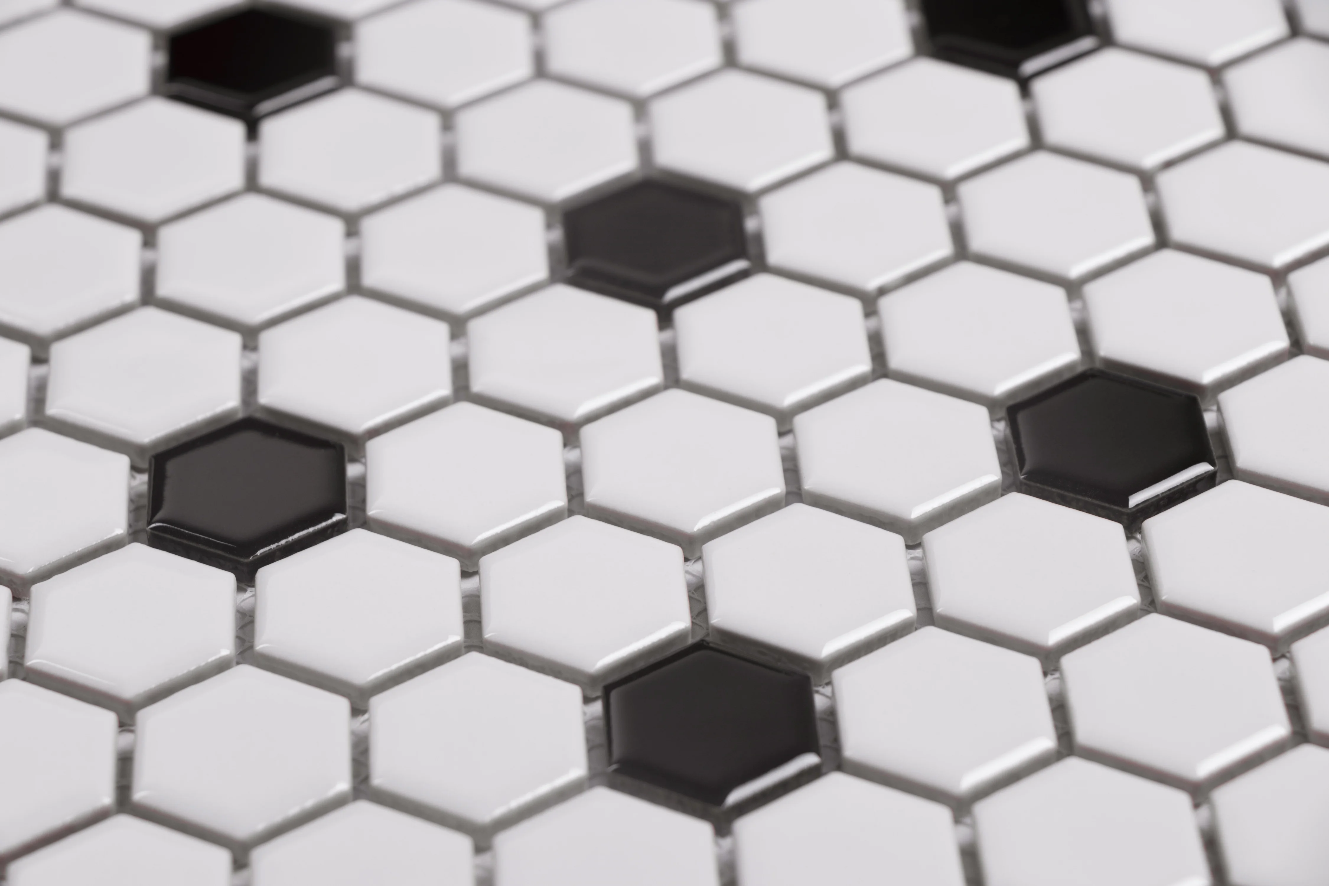 WS Tiles – Value Matte White with Black Dot 11.8 in. x 10.2 in. Porcelain 1″ Hexagon Mosaic Floor & Wall Tile (9 sq. ft / Case)