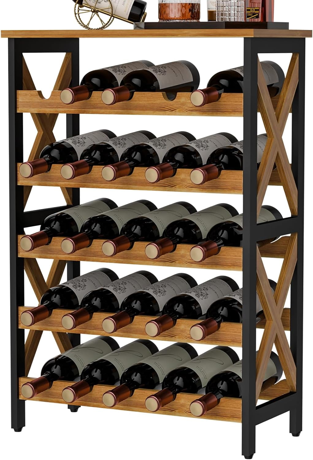 X-cosrack 25-Bottle Wine Rack Free Standing Floor, Rustic Wine Holder Stand 5 Tier Wobble-Free Tall Large Display Storage Shelf