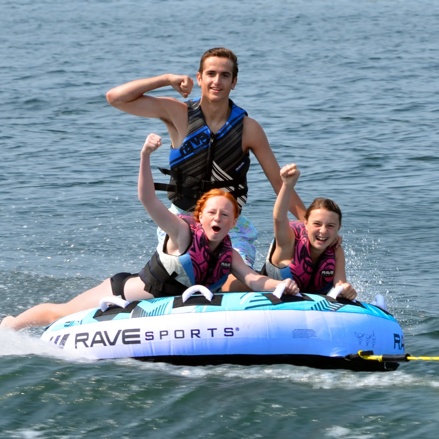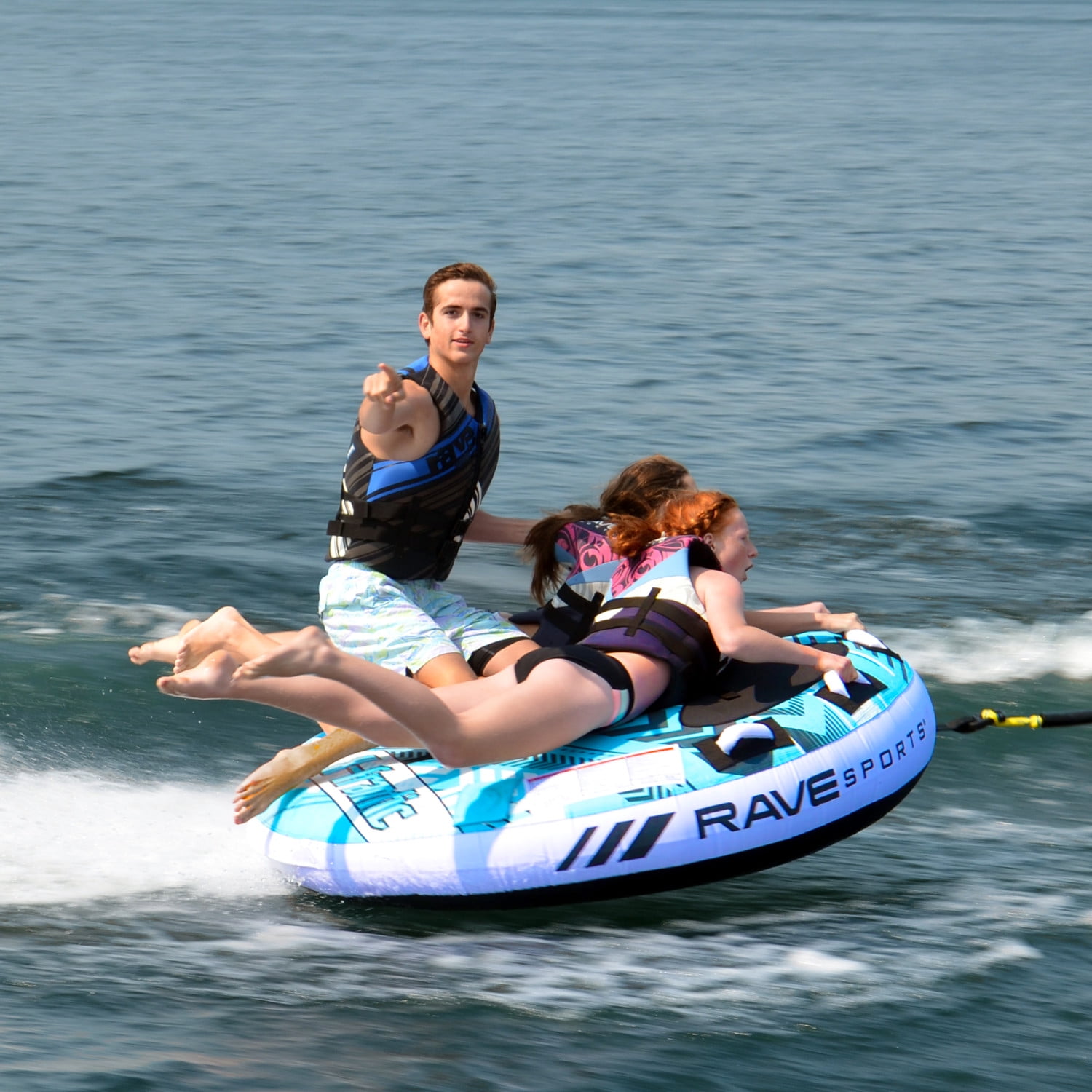 3 Rider: 510 lbs. (231 Kg) max rider weight Foam-filled handles with EVA knuckle guards The Frantic tapered deck tube that throws an exciting, wild ride! Available in 3 sizes! 3 Rider: 68″ x 14″ (173cm x 36cm) inflated3 Rider: 72″ (183cm) deflated Stay-brite Technology repels dirt, water & provides color fastnessSkim-Fast™ Bottom for a slick and fast rideRear boarding strap2 large anti-chafe guards4 foam-filled handles with EVA knuckle guardsQuick connect tow point