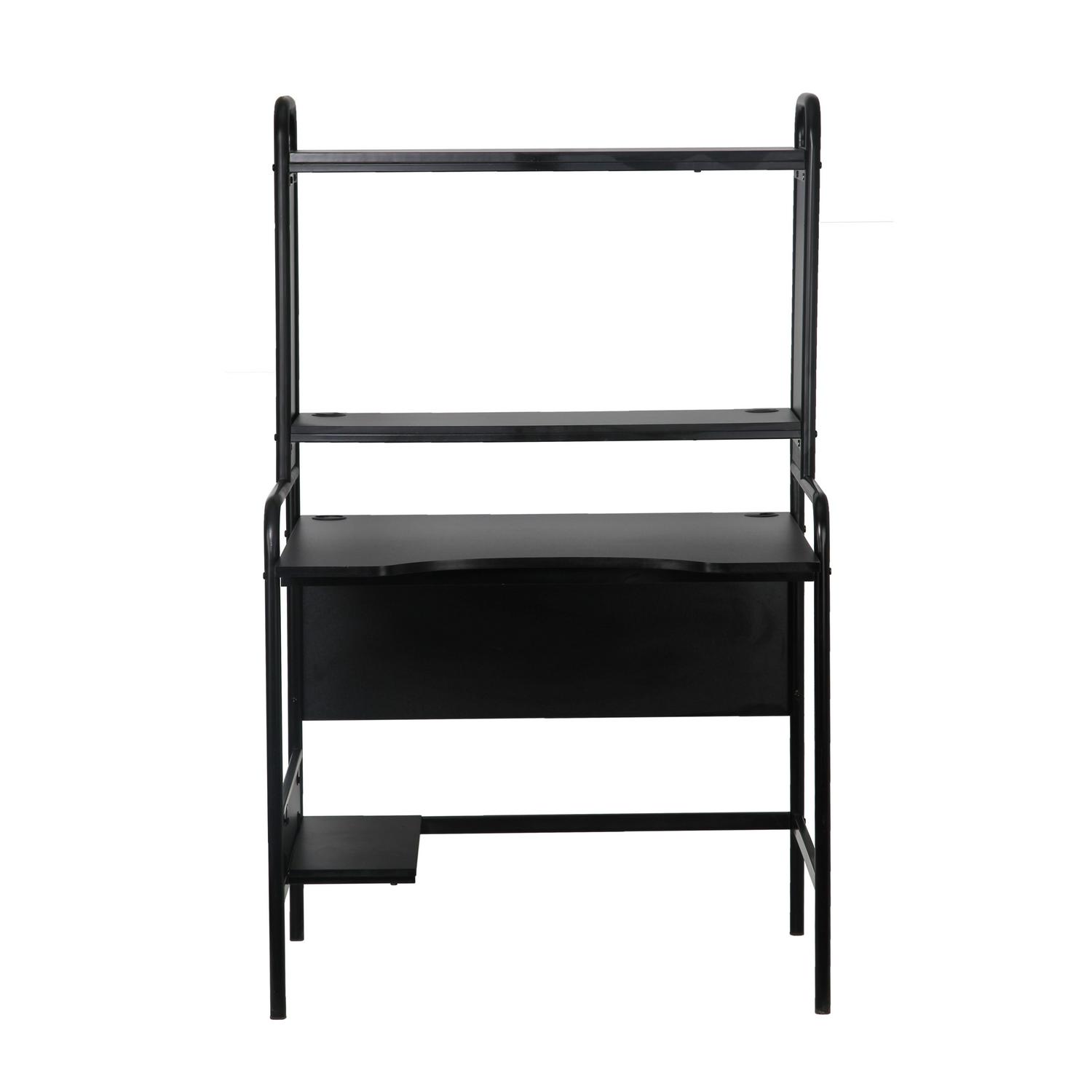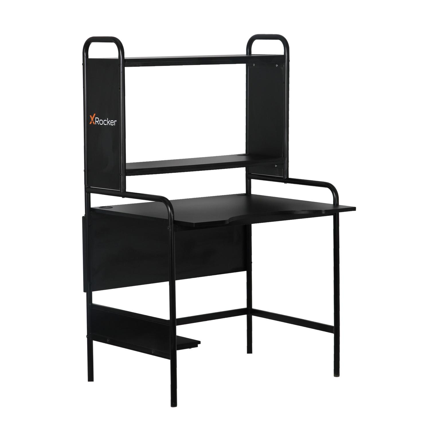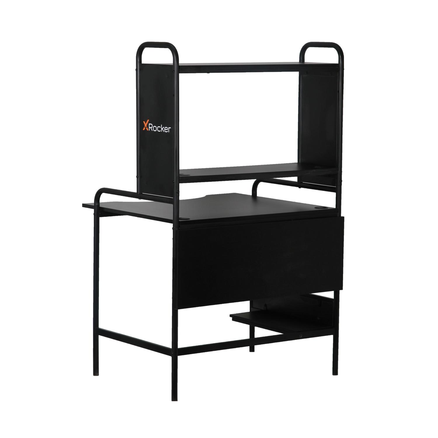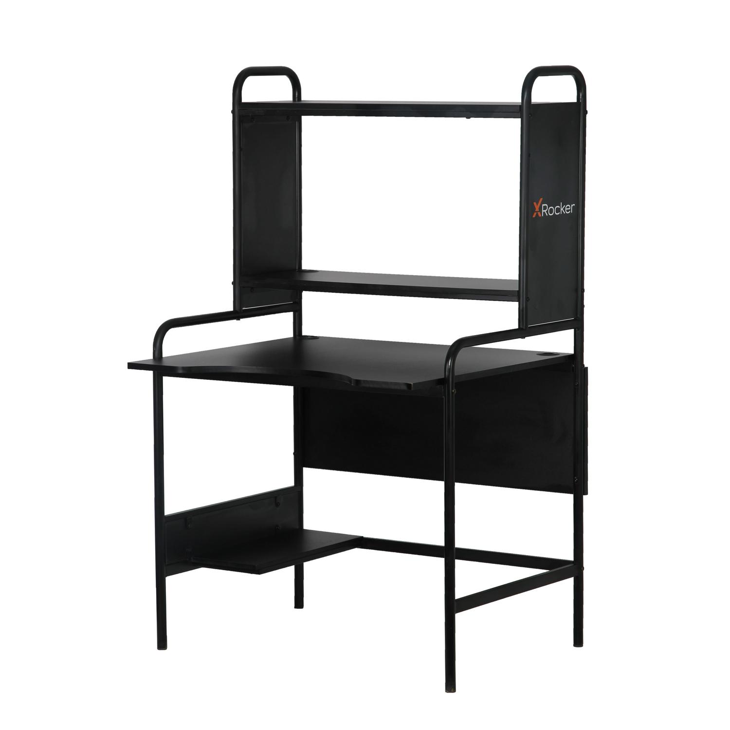 The X Rocker Icarus Gaming Desk is designed for comfort, ergonomics, and stability during intense gaming or work. The desk features cable routing through the eyelets on the monitor shelf while also providing a lower platform to keep your hardware off the ground. The desktop is finished with a melamine board that allows for a smooth glide for mouse control. The desk’s sturdy steel frame, adjustable shelving, and PC tray make it the perfect desk for both PC and console gaming.