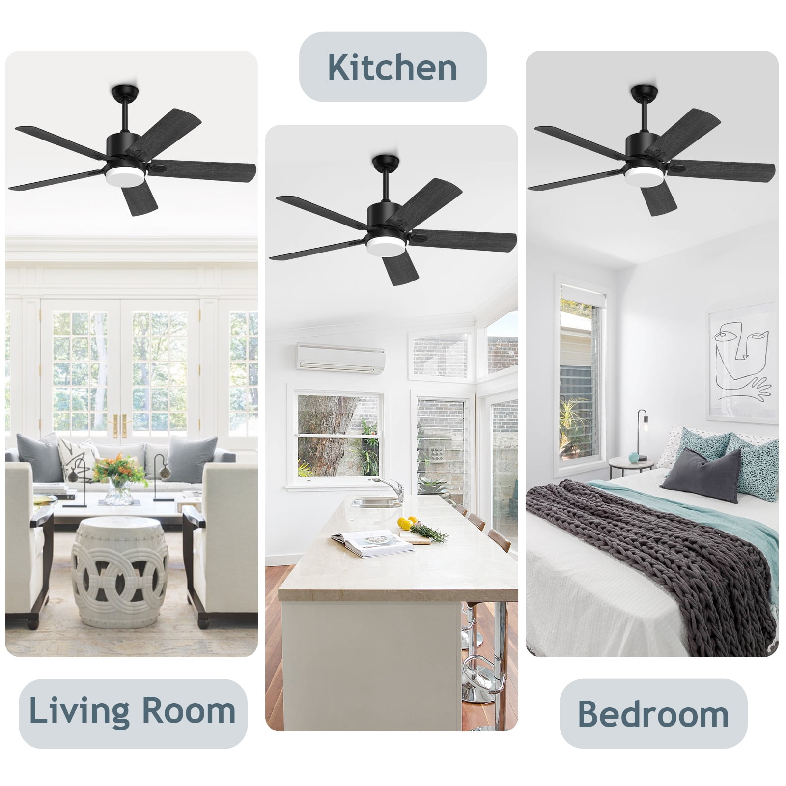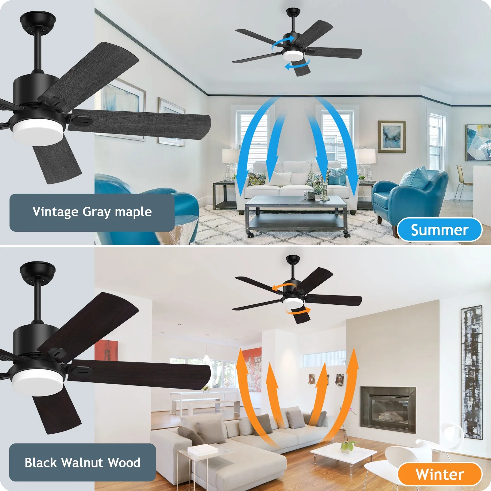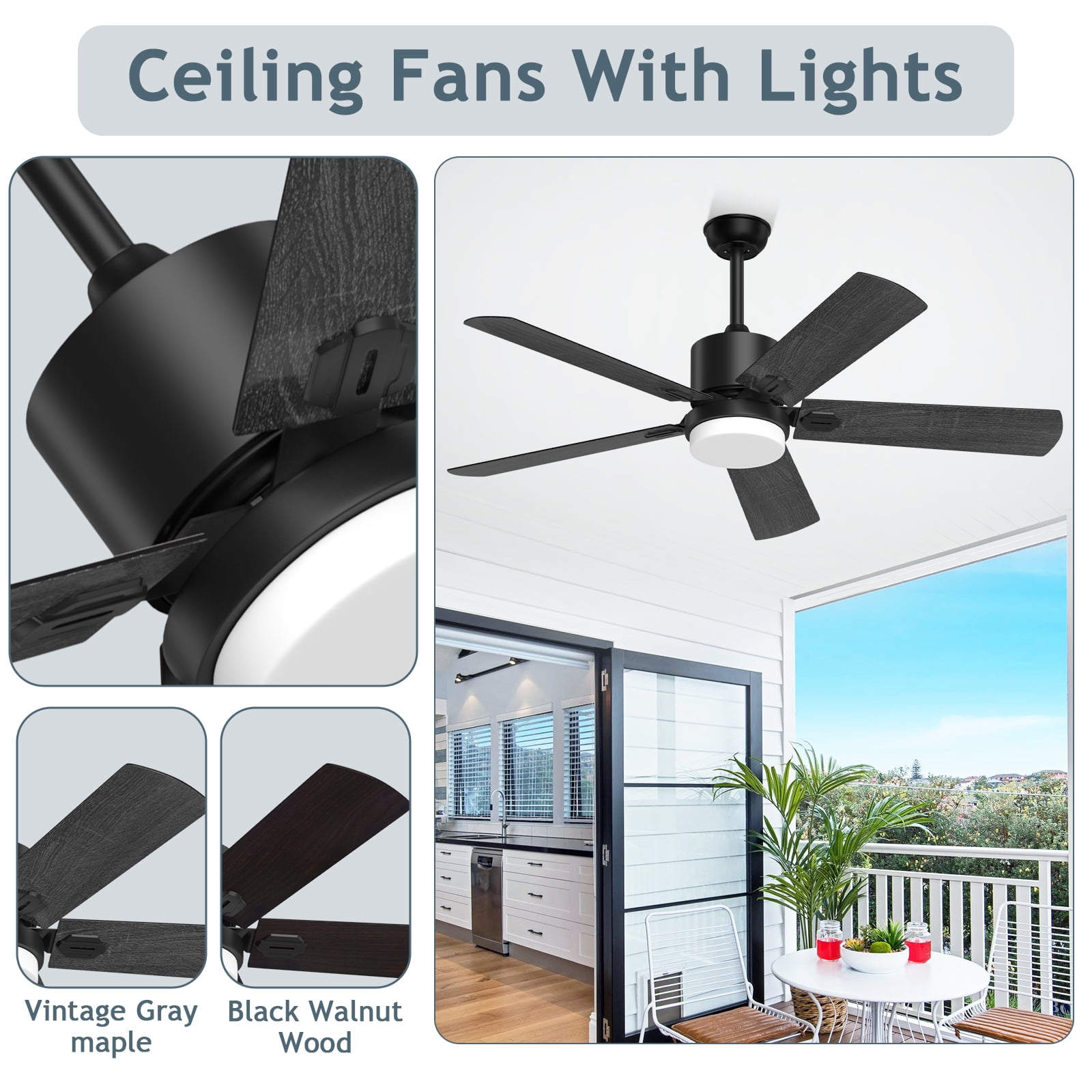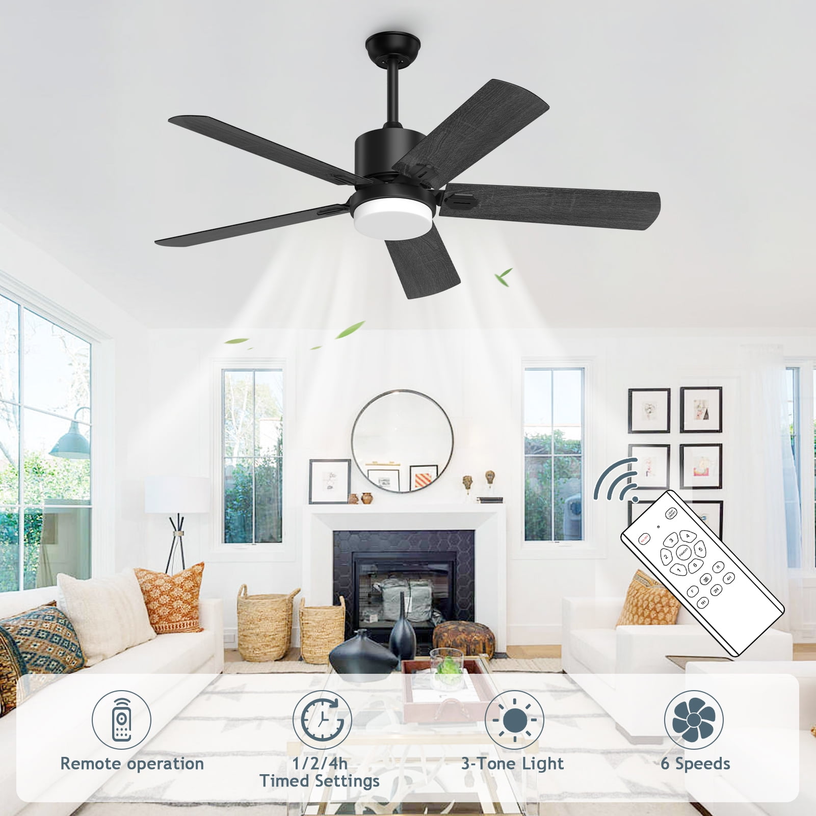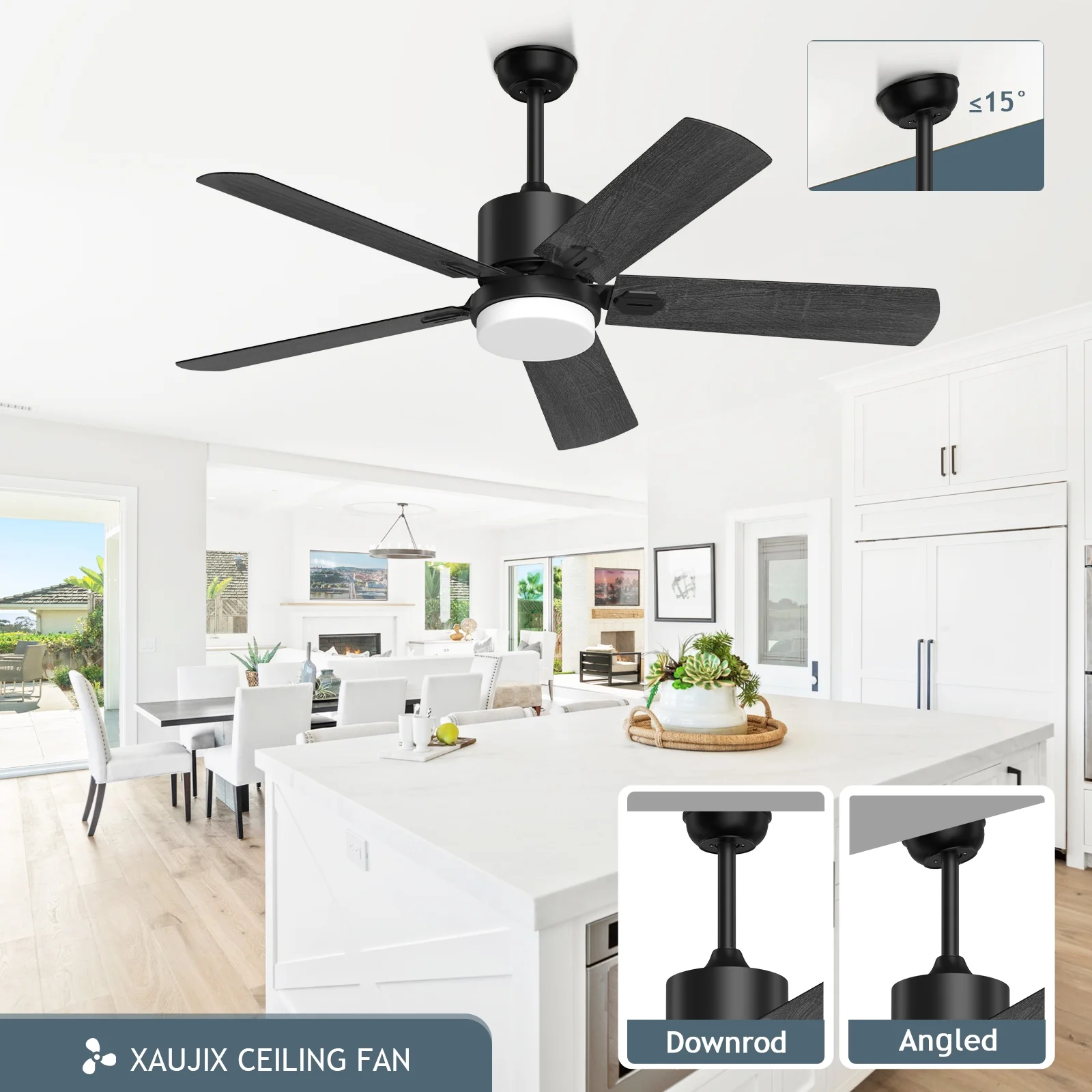 XAUJIX Ceiling Fan with Light and Remote Control, 52” Black Ceiling Fan with Light, 6-Speed Reversible DC Motor, 5 Wood Fan Blades