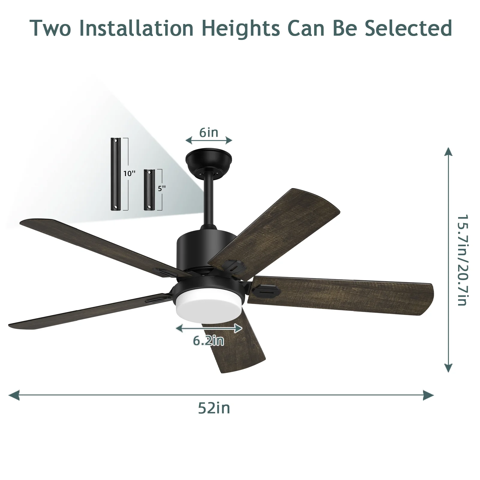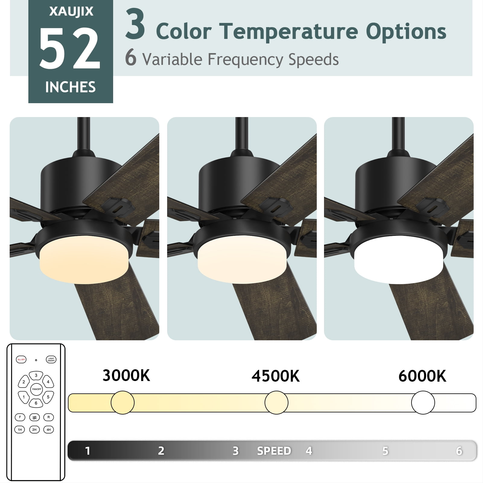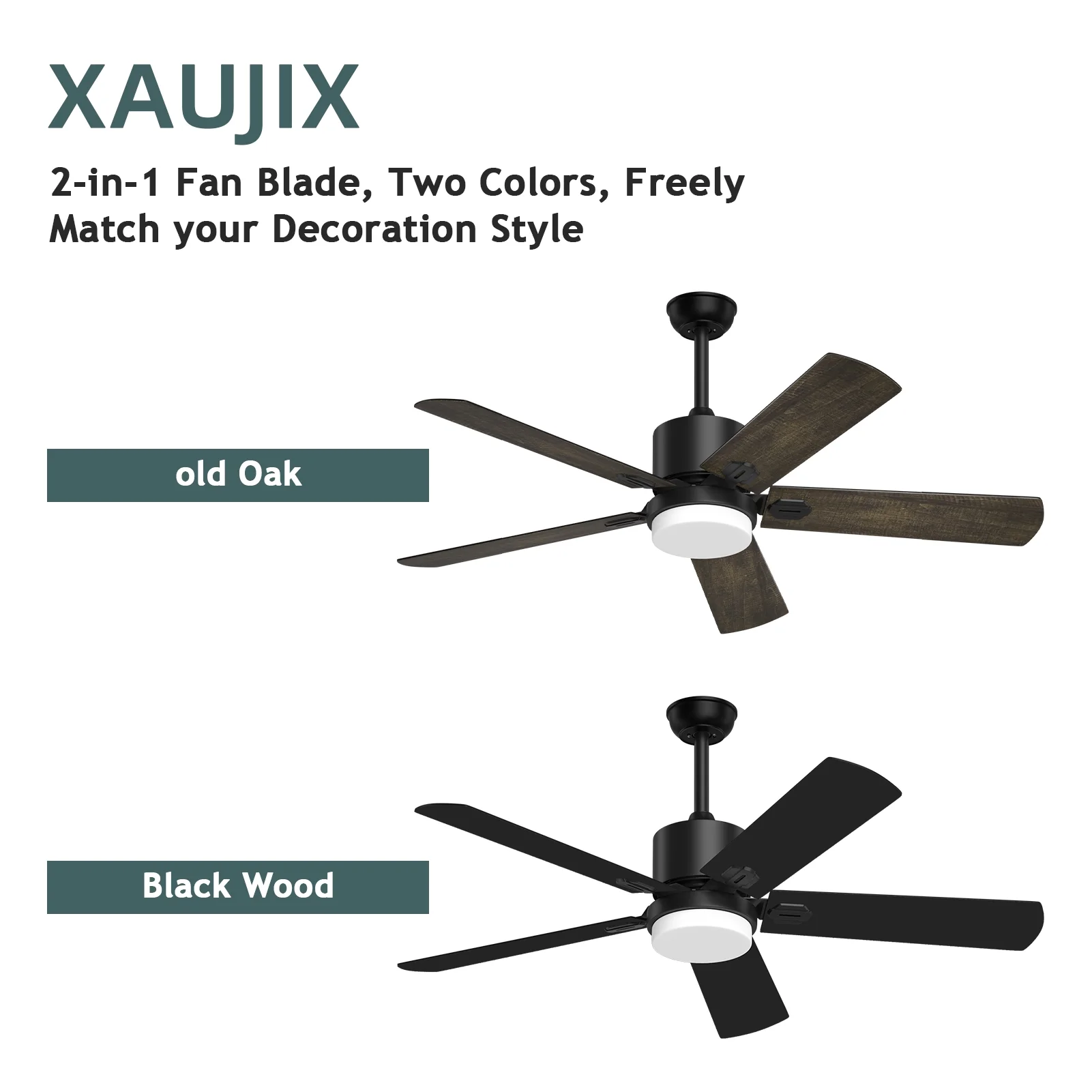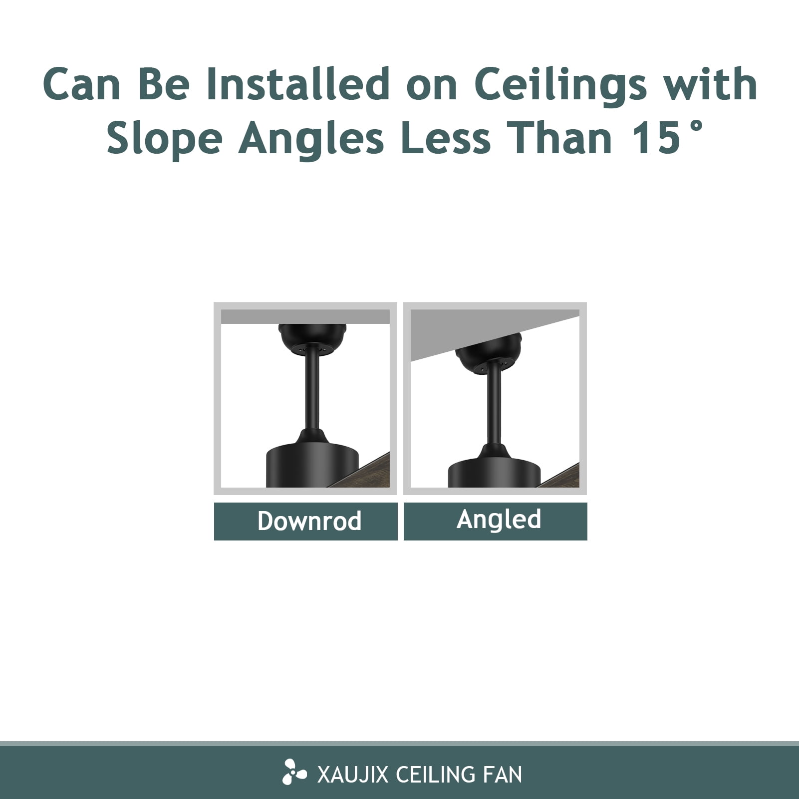 Modern ceiling fan: A 52 inch ceiling fan with light with 5 fan blades and dual finishes, designed with a black DC motor, suitable for use in bedrooms, living rooms, farmhouses, and garages. Ceiling fan with light: The motor adopts DC, which is more energy-efficient than AC DC, and saves energy. The noise level is 35 decibels, with a long service life. The modern ceiling fan with light has reversible reverse function in summer and winter, which can used all year round. Multi function selection? Ceiling fan with remote control with 6-wind speeds, 1/2/4 hour timing setting, 15W LED with three color adjustable lumen brightness including 3000k (warm light), 4500k (white light), and 6000k (cold white light), and the light has memory function and can time for memory. Easy to install: The farmhouse ceiling fan with light with two lower rods (5 ” and 10 ”)can form an angle of 0-15 degrees. They have a moisture-proof rating and should not install in direct sunlight or rainwater. Please read the installation video and instructions during the installation process. Warranty service: The XAUJIX brand provides 2 brackets with worry free warranty, supports 24-hour technical service, and provides a 90 day warranty. If you encounter any problems during installation and use, you can contact us at any time.