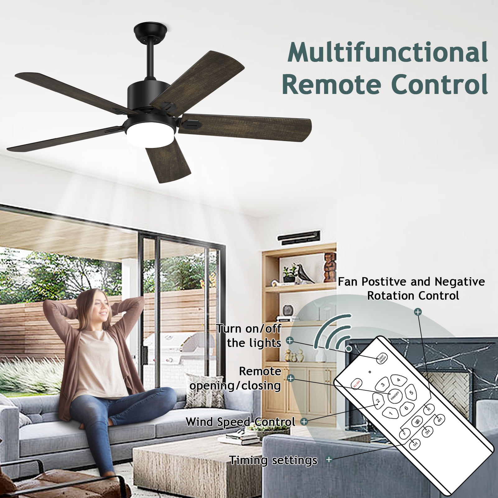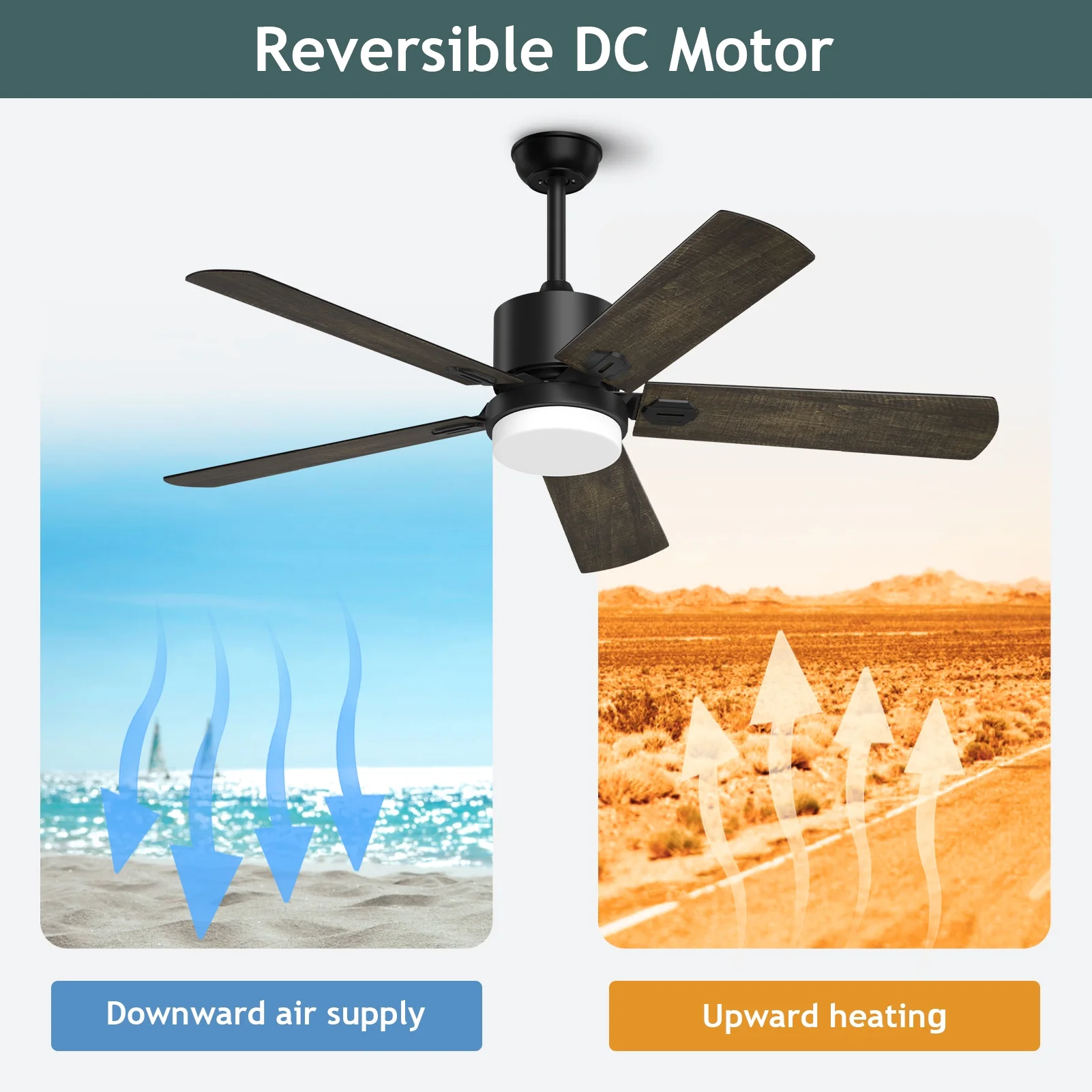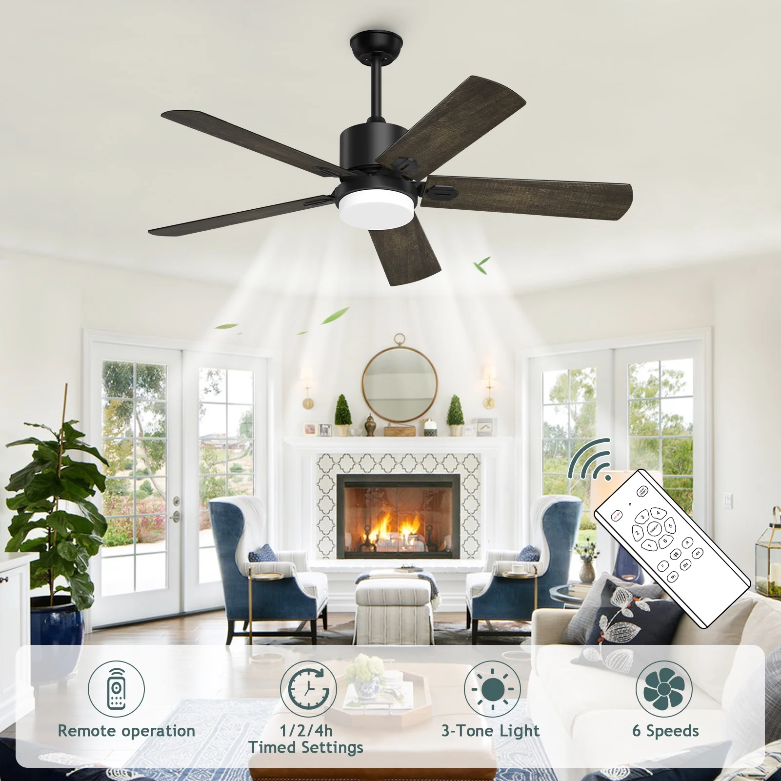 Modern ceiling fan classic wood blades fan, 5-wing 2-in-1 ceiling fan, reversible in summer and winter, with remote control timer. Using a DC motor, compared with the traditional AC motor, it can save energy by 50%, and the noise is less than 35dB. With a moisture-proof rating, they can be hung indoors or in covered outdoor spaces such as patios, pergolas, garages , etc. (Note: Do not directly contact rainwater.) Ceiling fans and lights are available separately. The included remote controls the power, 6 speed settings of the fan, the reversible airflow and light as well for the ultimate convenience. Timer memory function, can be customized for 1 hour, 2 hours, 4 hours adjustment, you can choose arbitrarily. Modern lighted ceiling fans are reversible for summer and winter, so they can be used all year round.(In winter and summer, the forward and reverse remote control displays F/R.)