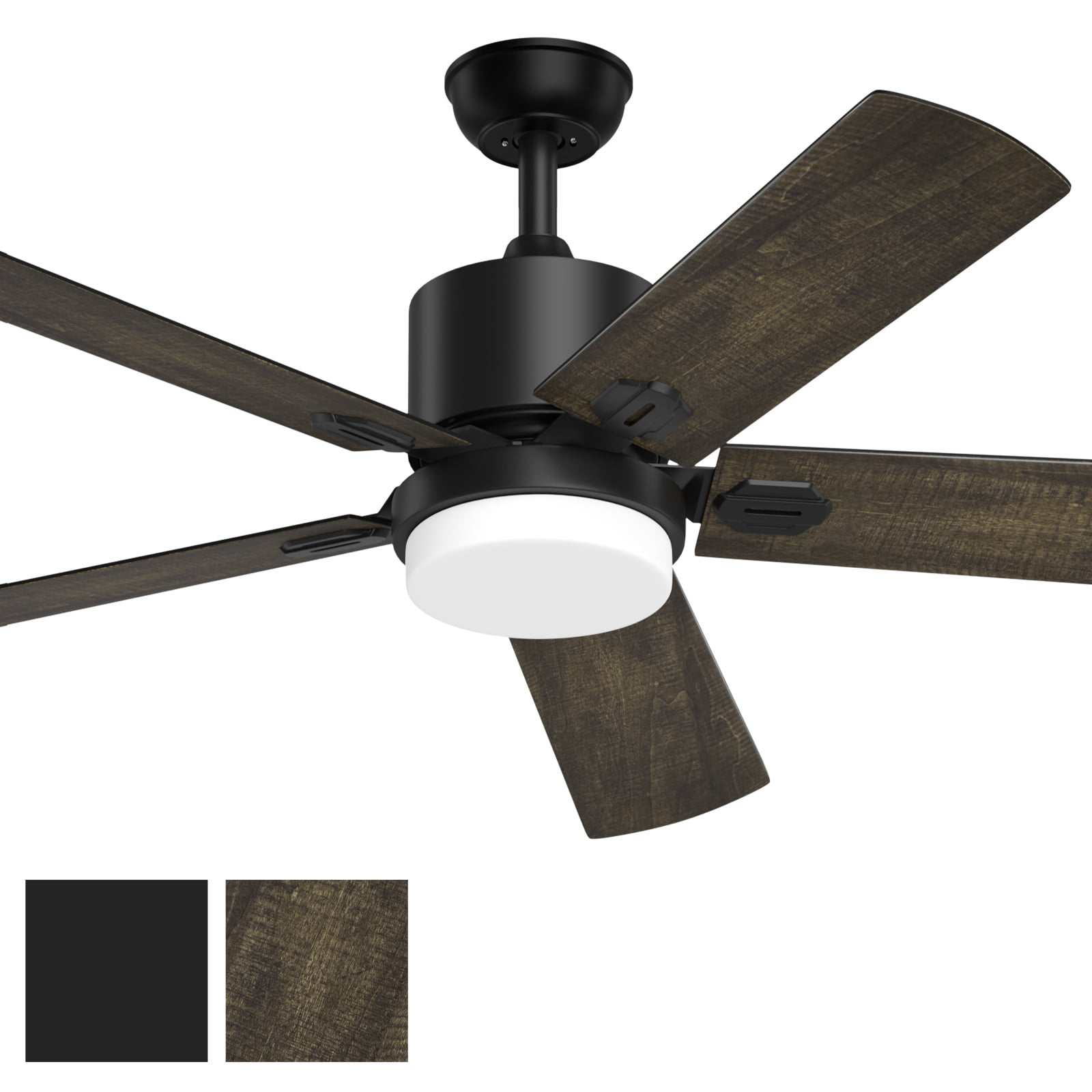 XAUJIX Ceiling Fan with Light and Remote Control, Modern Flush Mount Ceiling Fan 52 ” 6-Speed Reversible DC Motor 5 Wood Fan Blades Retro Pine/Black