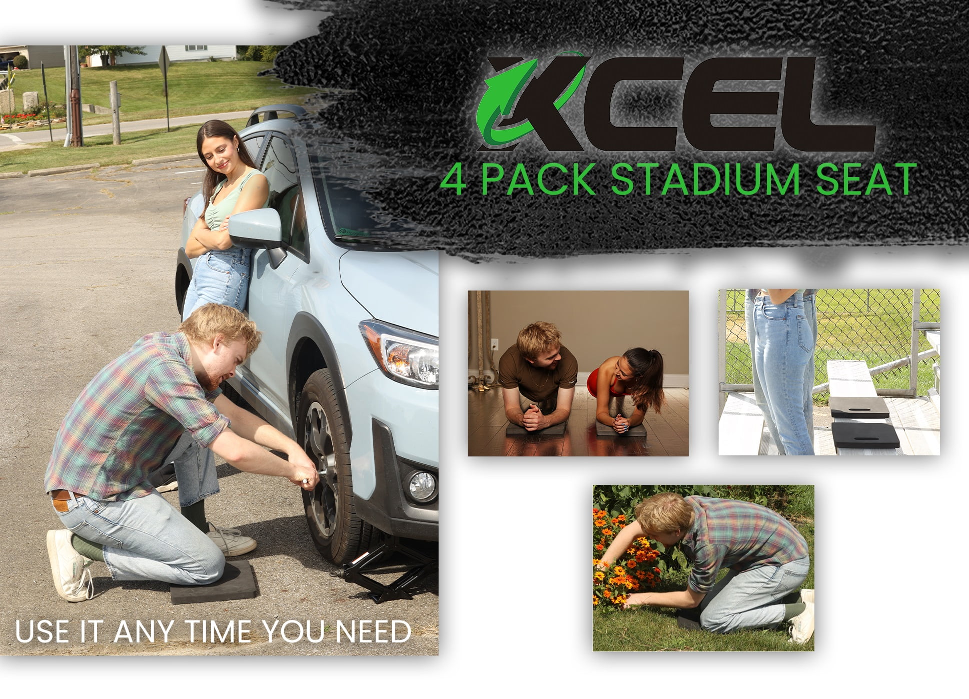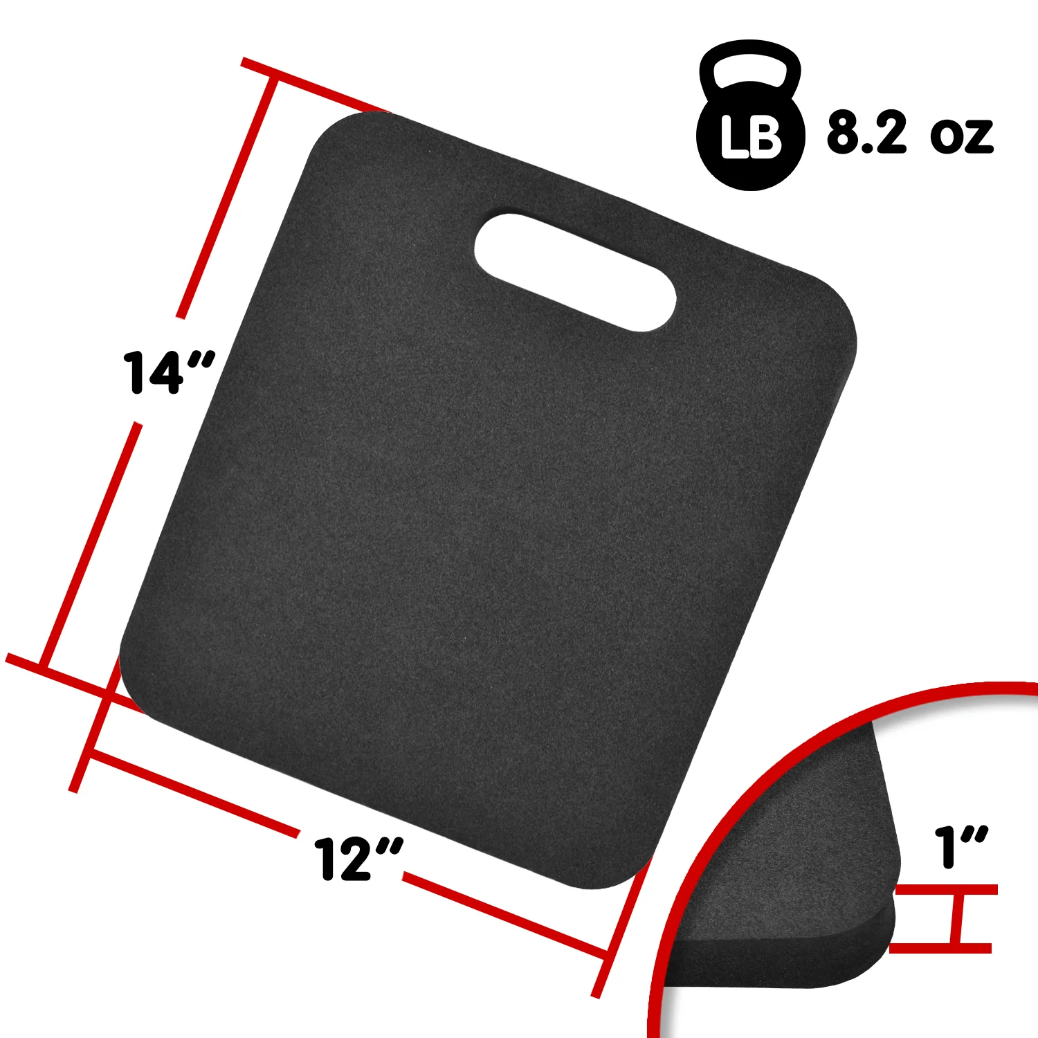 XCEL Rubber Heavy Duty Multi-Purpose Black Universal Seat Cushions, Pain Relief, 4-Pack, 14″ x 12″ x 1″ These multi-functional Heavy Duty XCEL Seat Cushions can provide comfort at home or in the office as an office chair pad, chair cushion, kneeling pad for gardening or automotive knee pad. Built-in handle for ease of carrying as a stadium seat cushion, bleacher pad, kneeling pad, chair cushion or meditation seat.