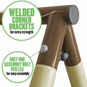 – A sturdy metal frame with high-density foam padding on legs; ground anchors not included