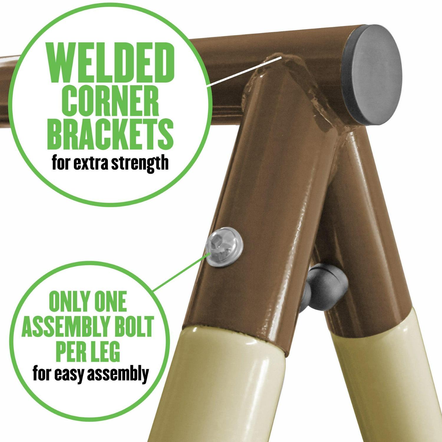 - A sturdy metal frame with high-density foam padding on legs; ground anchors not included