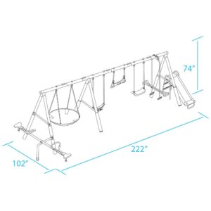 XDP Recreation Fun All-Mighty Steel Swing Set with Super Disc Swing, Stand R Swing, Glider, and Slide
