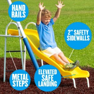 XDP Recreation Play All Day Metal Swing Set with Fun Glider, Bench Swing Seats, Trapeze, Wave Slide