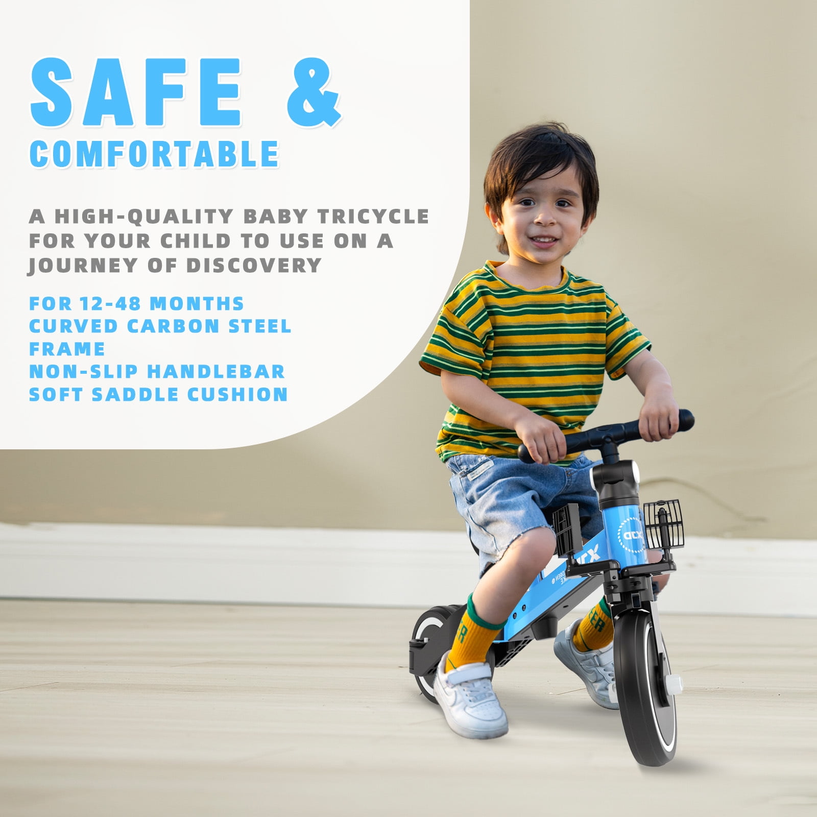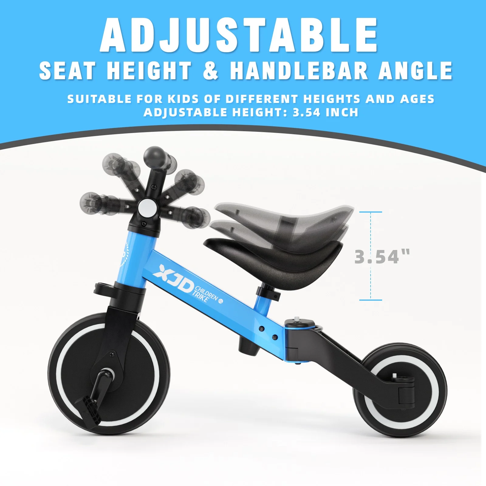 RECOMMENDED: XJD Trikes for toddler offers convenience, comfort, and fun! This sturdy trike features steel construction, comfort adjusts angle grip handlebars and quiet ride wheels. The adjustable seat ensures your child will enjoy the trike for years. Adjustable handle to meet different needs Plus, it comes with a fun detachable pedal. 5 MODERS: Push Tricycle Mode, Push Balance Bike Mode, Tricycle Mode, Balance Bike Mode and Bike Mode. Multifunctional tricycle is suitable for 1, 2,3 ,4years old boys and girls. EASY TO ASSEMBLE: Our baby bike just need to install the handlebar and seat within minutes according to the instructions of the manual. Compared with other tricycles, XJD tricycle has an additional adjustment of the handlebars, lift seat function, and adjusts the handle angle and seat height(adjustable from 11.8 inch to 14.2 inch) perfectly suitable for growing with baby STURDY AND COMFORTABLE: Trikes for toddler has safety carbon steel frame, durable widen silent wheels, strong enough for riding indoor or outdoor. Soft handle grips and seat make kids’ comfortable riding LEARN TO STEER: Our toddler bike is the best birthday gift for baby to learn how to ride a bike. Excellent indoor baby walker toy develops kids balance and helps kids gain balance, steering, coordination, and confidence at an early age SAFETY GUARANTY: Fully enclosed wheel avoid clamping baby’s feet. XJD kids bike has been passed safety testings required, all the materials and design are safe for kids, please feel assured to choose. XJD aims to supply high-quality products to make every baby enjoy the pleasure during his/her play, if you are not satisfied with our bike, please feel free to contact us, we will be happy to work out a replacement or a refund BABY’S FIRST BIKE GIFT:XJD tricycle passed ASTM F963-11, CPSC Certficate. Carbon steel body frame, EVA foam silent wheels and PU seat. All the materials are BPA-Free.It would be one of the best gift for your baby’s first birthday