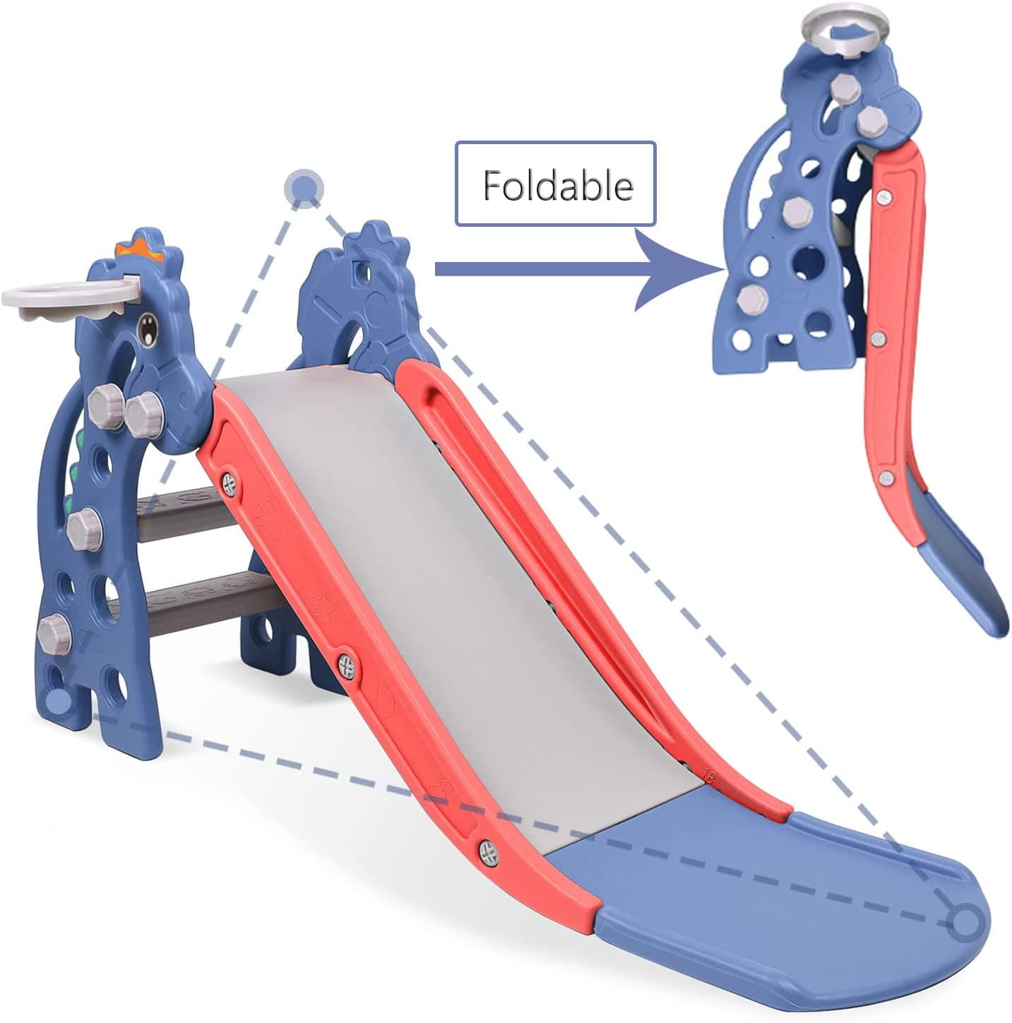 XJD Toddler Slide Indoor Slide for Toddlers Age 1-3 Slide for Kids, Outdoor Slide Baby Slide Plastic Slide Play Slide Basketball Hoop and Ball Foldable Slide, Blue