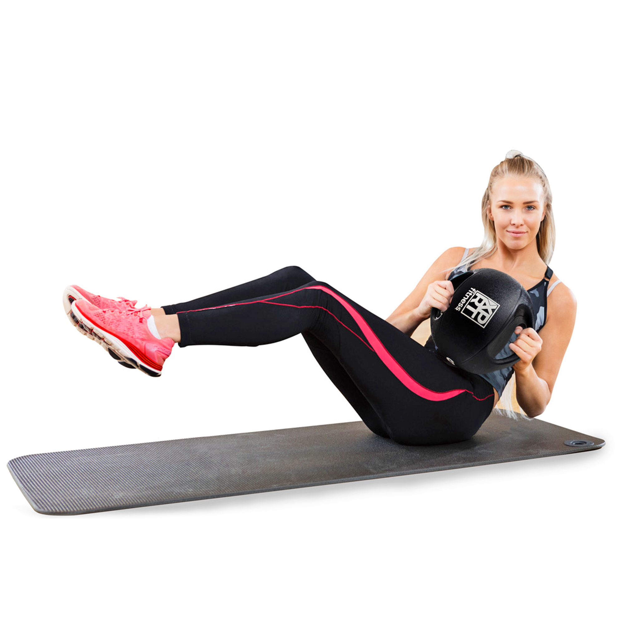 Durable textured shell Two wide and anti-slip handles Comfort and secure holding during the workout Balanced weight distribution Ball Diameter: 10.7 inches Workout guide included