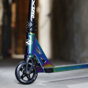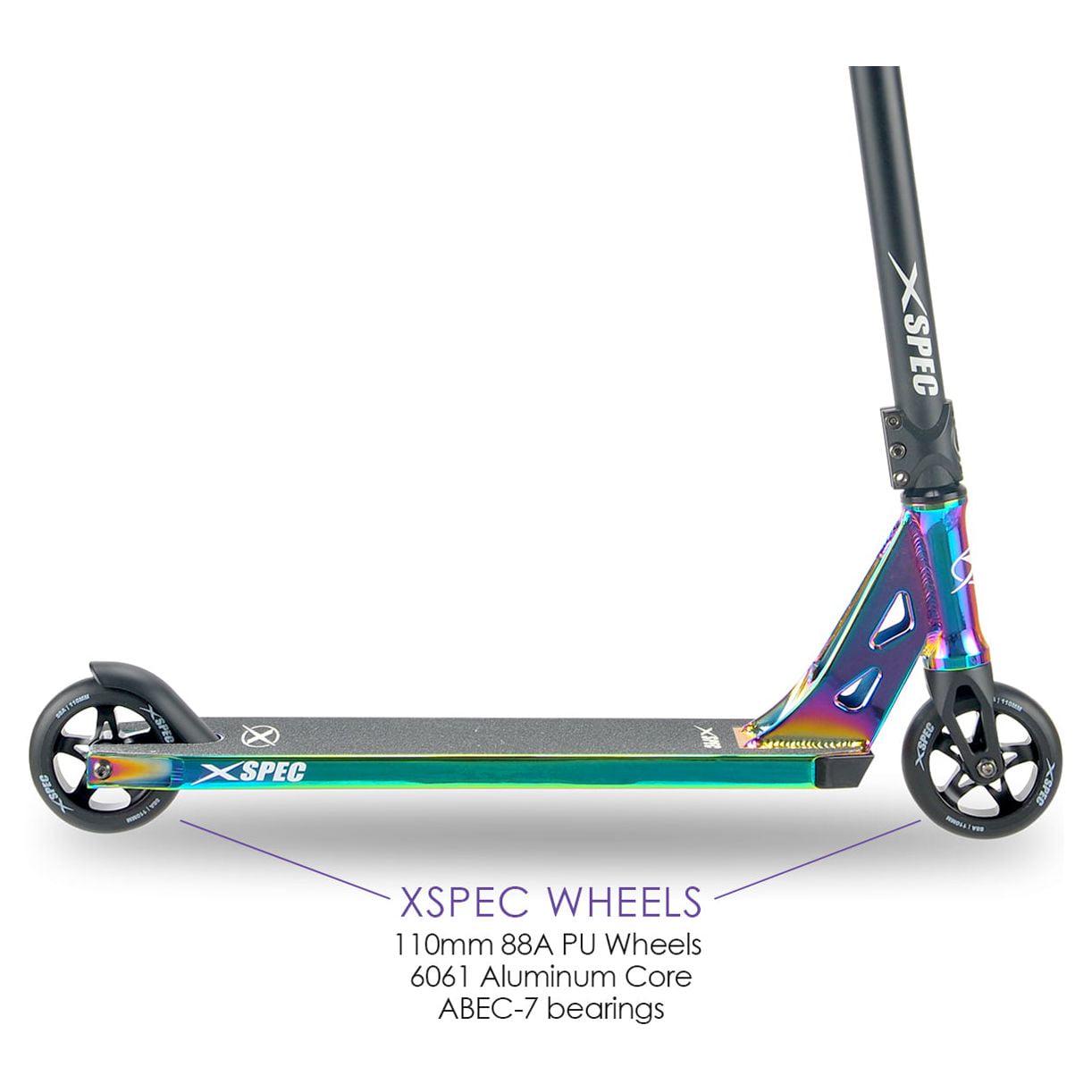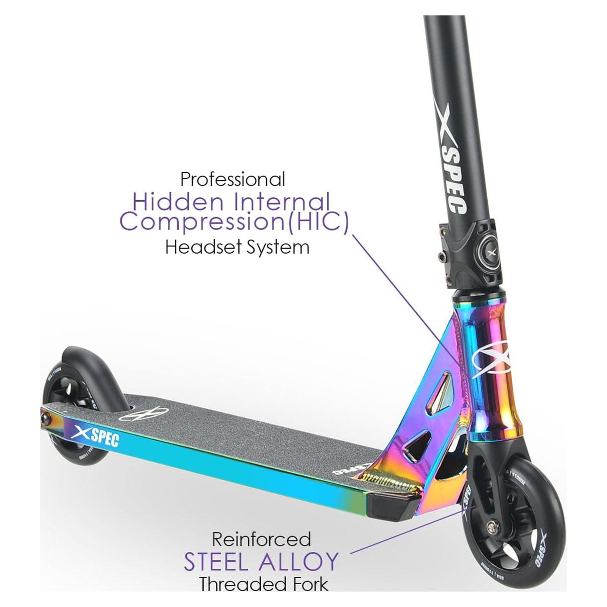 Xspec Neo Chrome Pro Kick Stunt Scooter – Oil Slick Rainbow Anodized Design, Purple