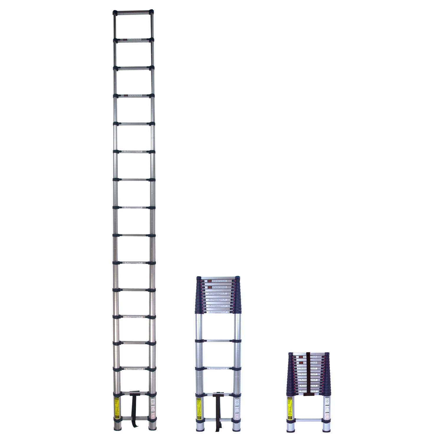 Xtend+Climb Telescoping Ladder, Heavy Duty, Series: Professional, 19.5 ft Reach Height, 250 lb Load Capacity, 15.5 ft Height to Platform, 36 in Overall Height, 19-3/4 in Overall Width, 4-1/2 in Overall Depth, Aluminum Alloy, Clean Touch Anodized, ANSI Type I, OSHA Approved.Designed for both commercial contractors and home do it yourself customers, Xtend & Climb Telescoping Ladders are a sensible alternative to traditional bulky extension ladders. Lightweight and durable, these heavy-duty, time-saving ladders extend by the foot and feature ergonomic designs and locking tabs for smooth, safe operation. The styling and strength of the Professional Edition ladders will make them the most favored tool on the job site. Made of Aerospace Engineered 6061 alloy with a Clean-Touch anodized finish, each heavy-duty Xtend & Climb Professional Edition ladder has rungs that are built tough to ensure sturdy footing.